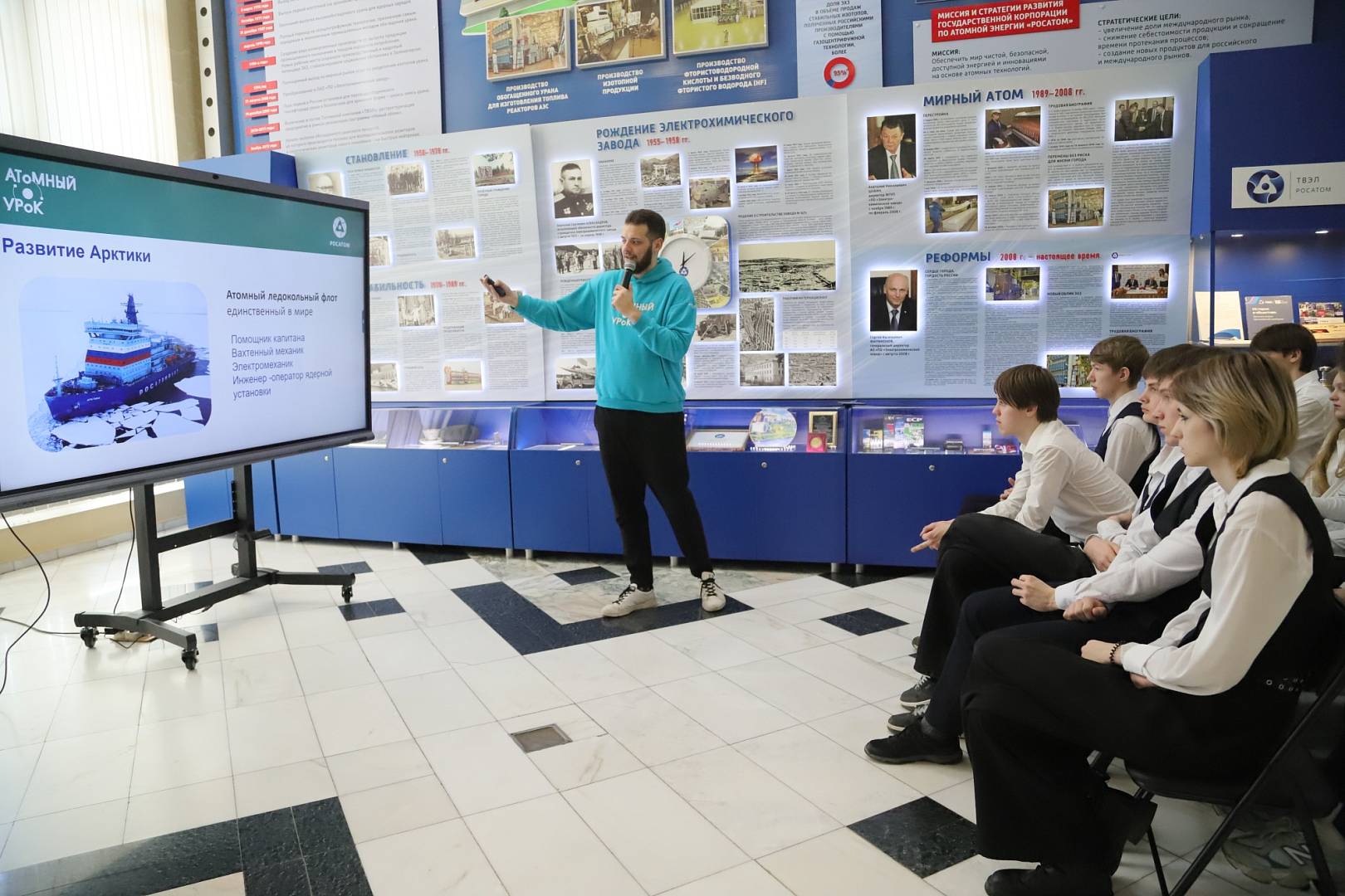 Всероссийский научно-просветительский проект «Атомный урок» реализуется с 2020 года. Он ориентирован на педагогов и школьников и направлен на формирование устойчивого интереса к атомной отрасли, а также знакомство с перспективными наукоемкими технологиями. Главная задача инициативы – помочь учителям и наставникам в увлекательной форме рассказывать школьникам о сложных темах ядерной физики, достижениях и будущем атомной энергетики.