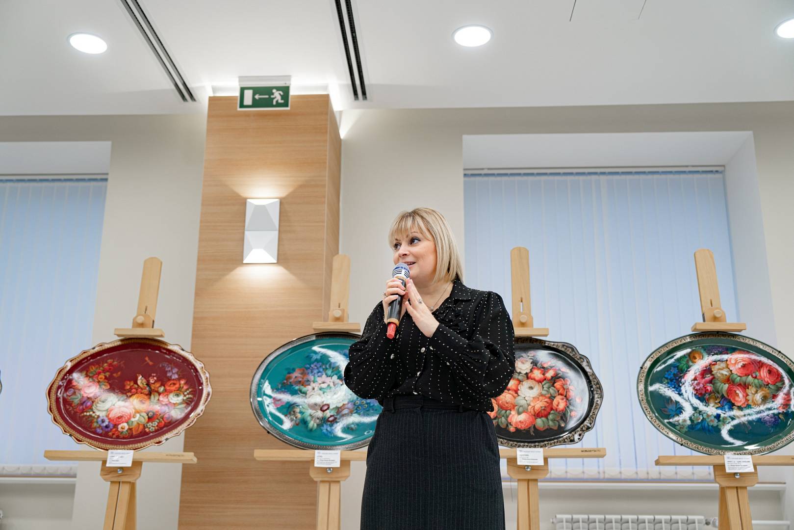 «Мы открываем выставку Жостовской фабрики декоративной росписи. Здесь представлены работы студентов, подготовка которых проходит через призму духовно-нравственных ценностей. Занимаясь росписью, они изучают природу и тем самым духовно обогащаются. Открытие удивительной экспозиции решает важную задачу по воспитанию и просвещению нашего молодого поколения», – сказала заместитель Министра просвещения РФ Ольга Колударова, обращаясь к участникам.