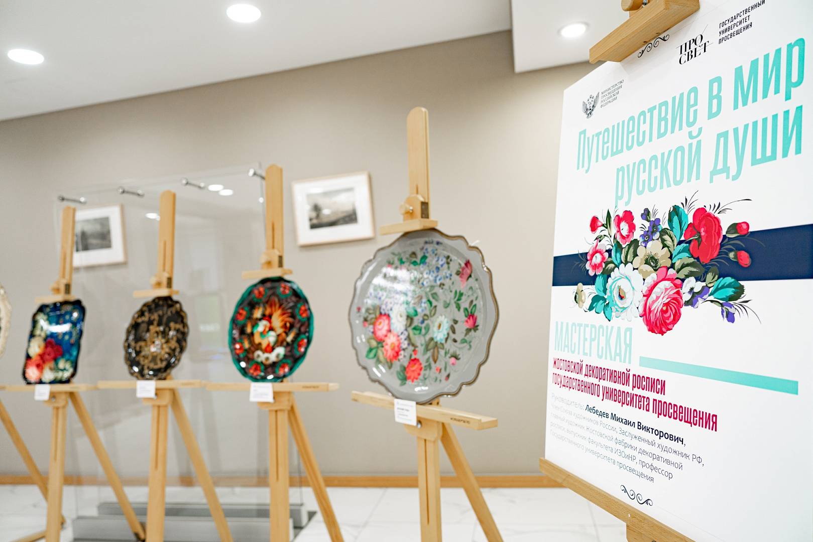Основной мотив жостовской росписи – цветочные букеты. Ректор Государственного университета просвещения Наталия Наумова выразила слова благодарности Минпросвещения России за поддержку и отметила, что создаваемые педагогами и студентами художественные образы стали визитной карточкой нашей страны.