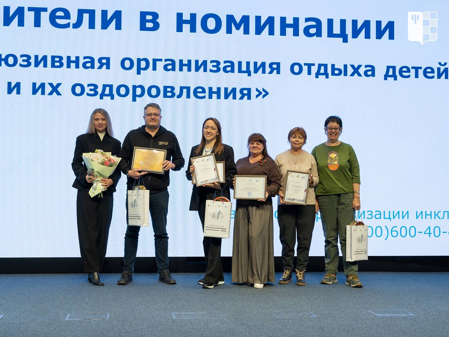 В номинации «Лучшая инклюзивная организация отдыха детей и их оздоровления» лучшим признано государственное автономное учреждение «Содействие детскому отдыху» (г. Курган, Курганская область), второе место занял детский оздоровительный лагерь «Мирас-Наследие» (Айшинское с. п., Республика Татарстан), третье место – детский оздоровительный лагерь имени Ю.А. Гагарина (г. Евпатория, Республика Крым).