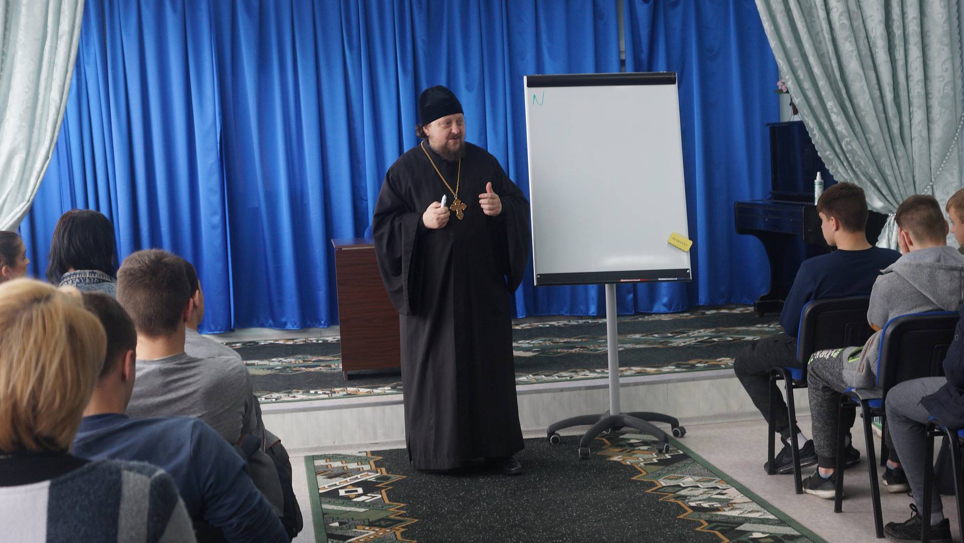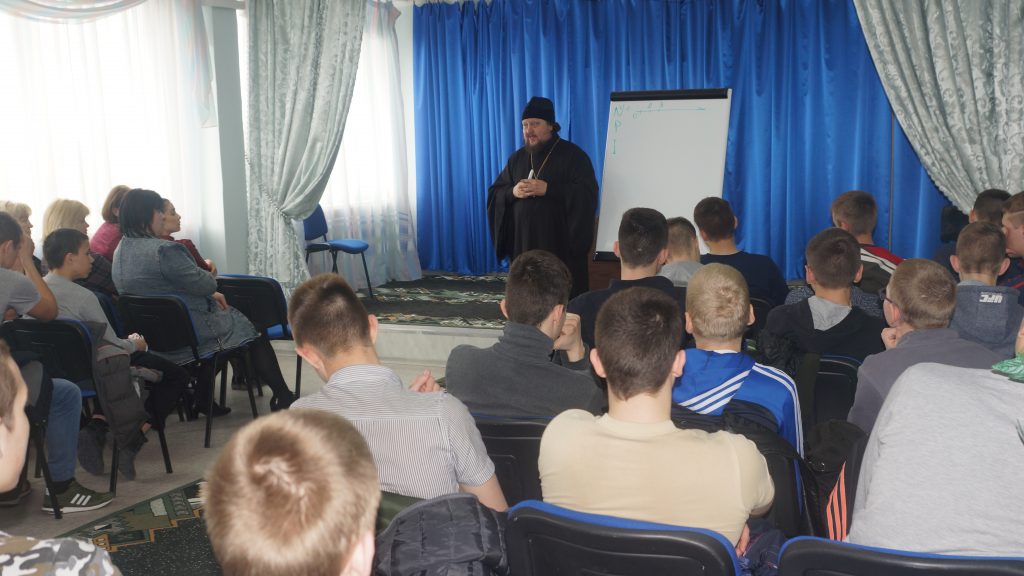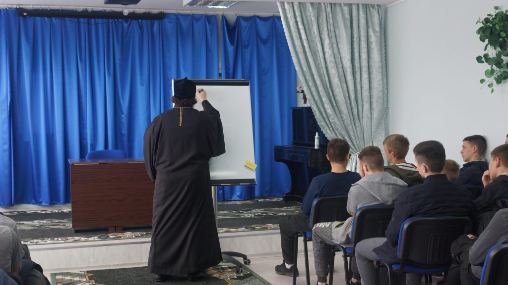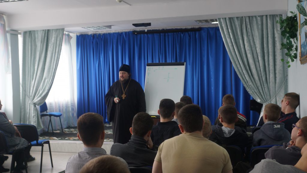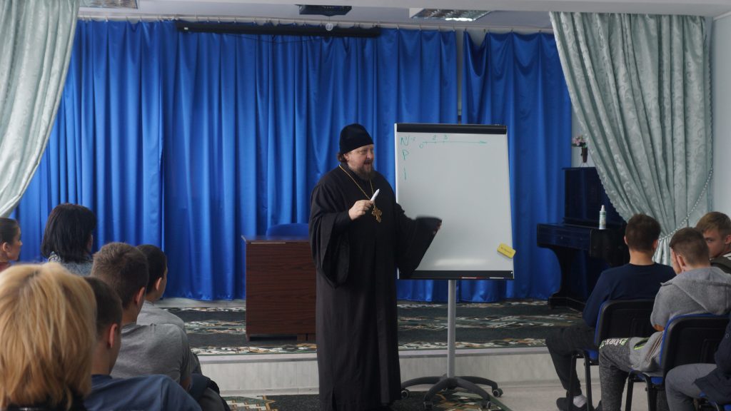 Он провёл беседу с ребятами. В ходе беседы батюшка на жизненных примерах связывал математические числа с людьми, их характерами, поступками и привычками. Например, отрицательными, положительными, рациональными и иррациональными могут быть не только числа, но и люди. Ничто так не близко к богословию, как математика. Отец Серафим говорил, что каждый из нас – часть мира, и нам не нужно отдаляться от родных и близких, ведь они желают нам только добра. Из каждой ситуации есть выход, и его необходимо найти. Мальчики активно беседовали с батюшкой, отвечали на его вопросы и с интересом задавали свои.