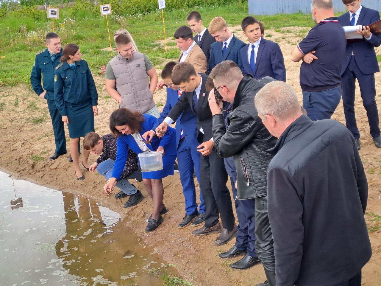 Нашу идею поддержали социальные партнеры из Калининградской областной таможни и наш наставник Сергей Анатольевич Солодков. Началось изучение теории и вместе с этим изучением кропотливая подготовка места, как оказалось, все не так просто. Но нам это удалось сделать. И вот, практически через год, состоялось зарыбление водоема Неманского СУВУ.