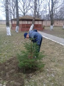 Обучающиеся, под руководством мастеров производственного обучения, проводили уборку территории от прошлогодней листвы и веток. Так же белили деревья и бордюры, вдоль дорожек и клумб.