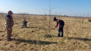 Выезжали на учебное хозяйство. Целью поездки, являлся уход за плодовыми деревьями и кустарниками черной смородины, поддержание территории учреждения в санитарно-гигиеническом состоянии. Также ребята выполняли обрезку и побелку деревьев, ягодных кустарников.