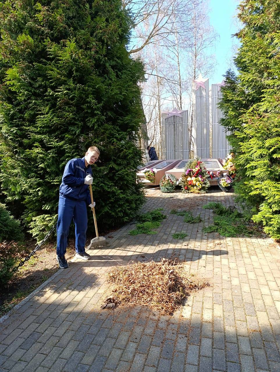 Волонтерское движение в нашем учреждении продолжается 8 апреля состоялся выезд в поселок Маломожайское на уборку территории мемориала захоронения воинов погибших в Великой отечественной войне. Наши ребята подстригли кустарники и ели, убрали ветки и листья, навели порядок около памятника защитникам Отечества.