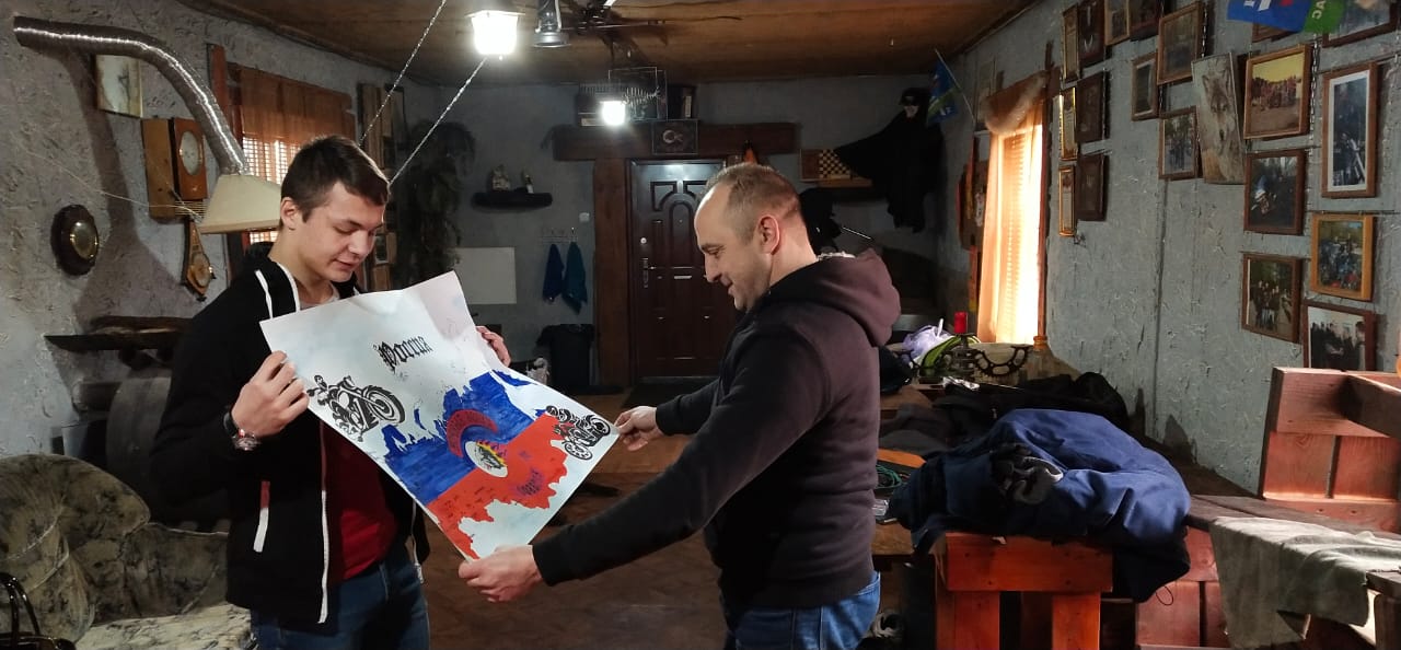 В ответ на поздравления президент мотоклуба подарил футболку с эмблемой «Ночные волки», пожелал Георгию новых творческих успехов и удачи в жизни.