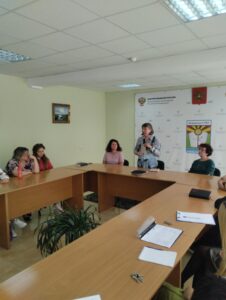 Встреча началась с круглого стола, в котором приняли участие администрация и педагоги учреждения. Ирина Владимировна рассказала о проектах, которые реализуются в Астраханском СУВУ, направленные на развитие коммуникативных и личностных качеств воспитанников и сотрудников учреждения. В ходе работы круглого стола Ирина Владимировна провела для педагогов вводное занятие в рамках программы «30 слов». Цель этой программы-формирование личностного и профессионального самоопределения обучающихся с девиантным поведением. Во время занятия педагоги знакомились со схемой взаимодействия органов и учреждений системы профилактики правонарушений несовершеннолетних, других социальных групп и институтов, расположенных на территории регионов откуда прибыли обучающиеся.