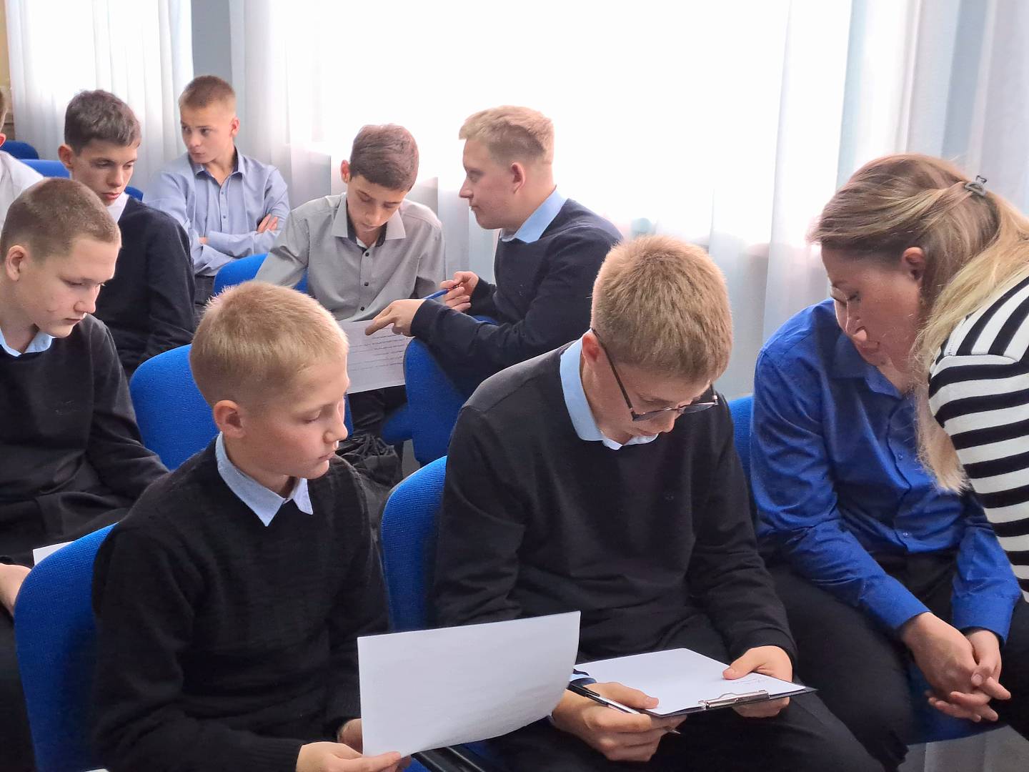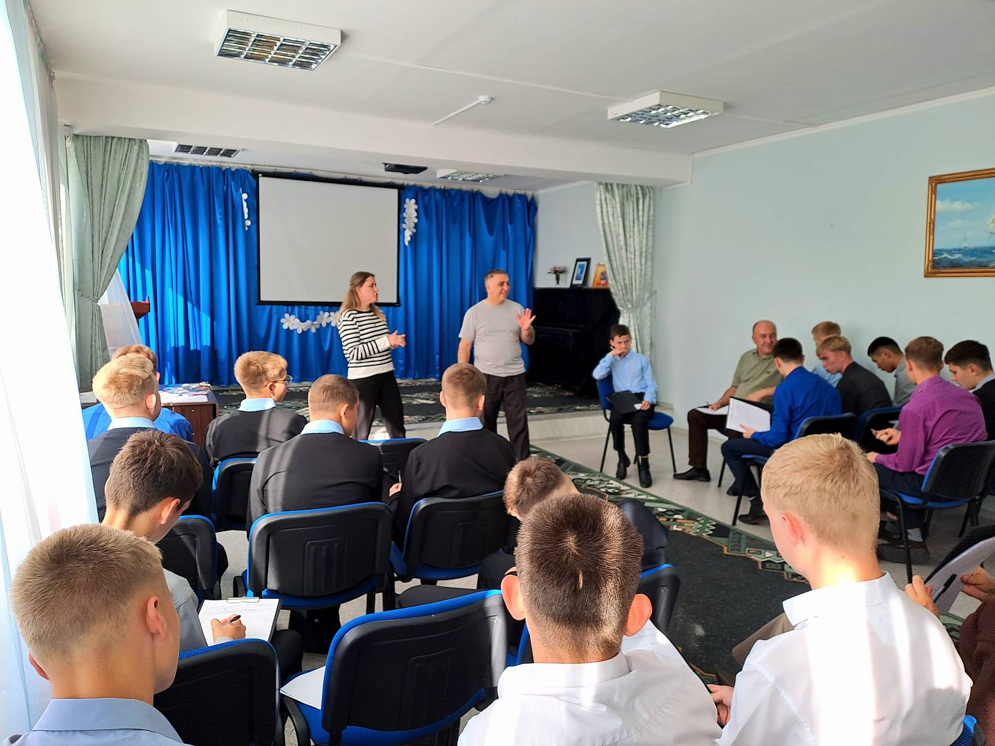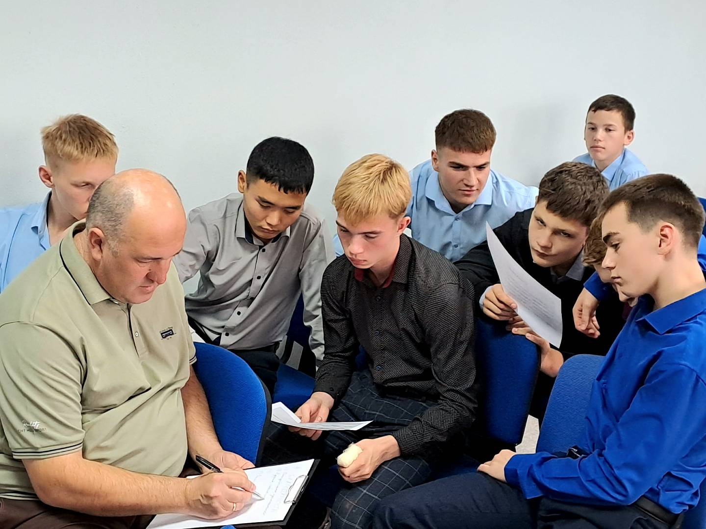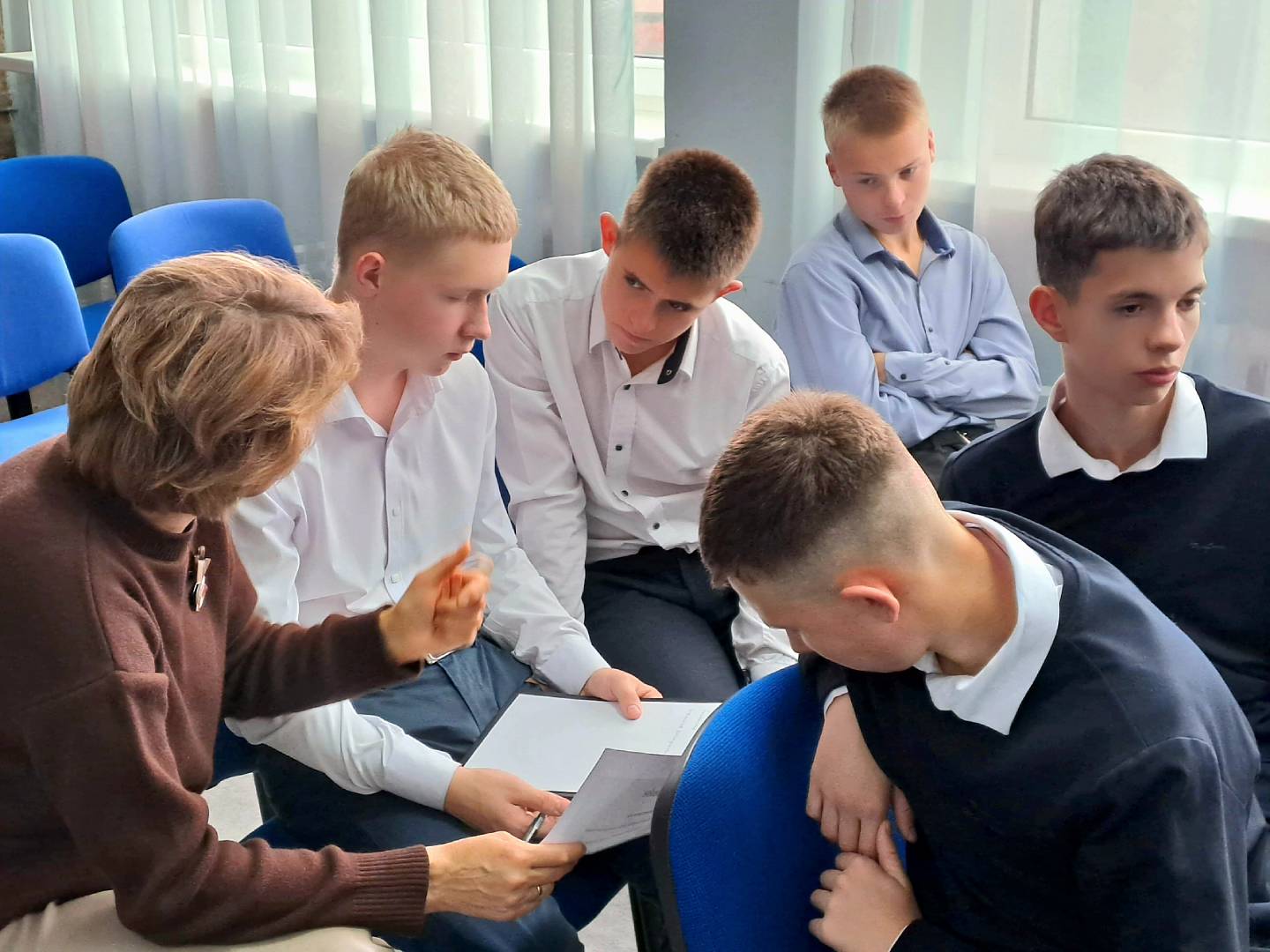 Наши педагоги-психологи Салаев Э.Э. и Соломина А.В. подобрали интересные упражнения для снятия усталости: сиквейн, психологическое (терапевтическое) письмо и мозготрон. Данные упражнения были выбраны не просто так. Каждое задание использовалось для достижения конкретной цели. Мозготрон помог настроиться на рабочий лад, формируя доверительные отношения между детьми и взрослыми, активизируя мыслительные процессы и координацию. Сиквейн помог прикоснуться к чувствам участников мероприятия. Поделившись на группы, педагоги и обучающиеся составили сиквейн с использованием слов «Гордость» и «Благодарность», чувственно изобразив эти слова синонимами, прилагательными и глаголами. Психологическое письмо помогло раскрыть глубинные проблемы и переживания. В своих письмах участники обратились к самому себе и своему недругу, что позволило снять напряжение, высказаться, освободиться от недосказанности и негативных эмоций. В завершении тренинга многие ощутили легкость и бодрость.