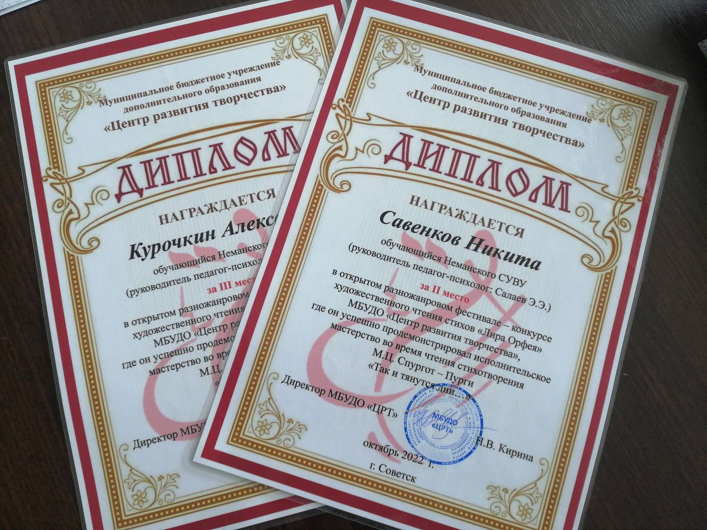 Это фестиваль-спутник «Межрегионального очно-заочного музыкально-поэтического фестиваля-конкурса «Юный Орфей», который проходит при поддержке Департамента образования, науки и молодёжной политики Воронежской области. Под руководством педагога-психолога Салаева Э.Э., ребята подготовили к выступлению стихотворения автора М.Ц. Спургот-Пурги: «Так и тянутся дни…» и «Метёт пурга…». Жюри конкурса по достоинству оценили подготовку и уровень чтения выбранных произведений. По итогам конкурса Савенков Н., занял второе место, а Курочкин А., занял третье место и как итог ребята прошли следующий тур конкурса.