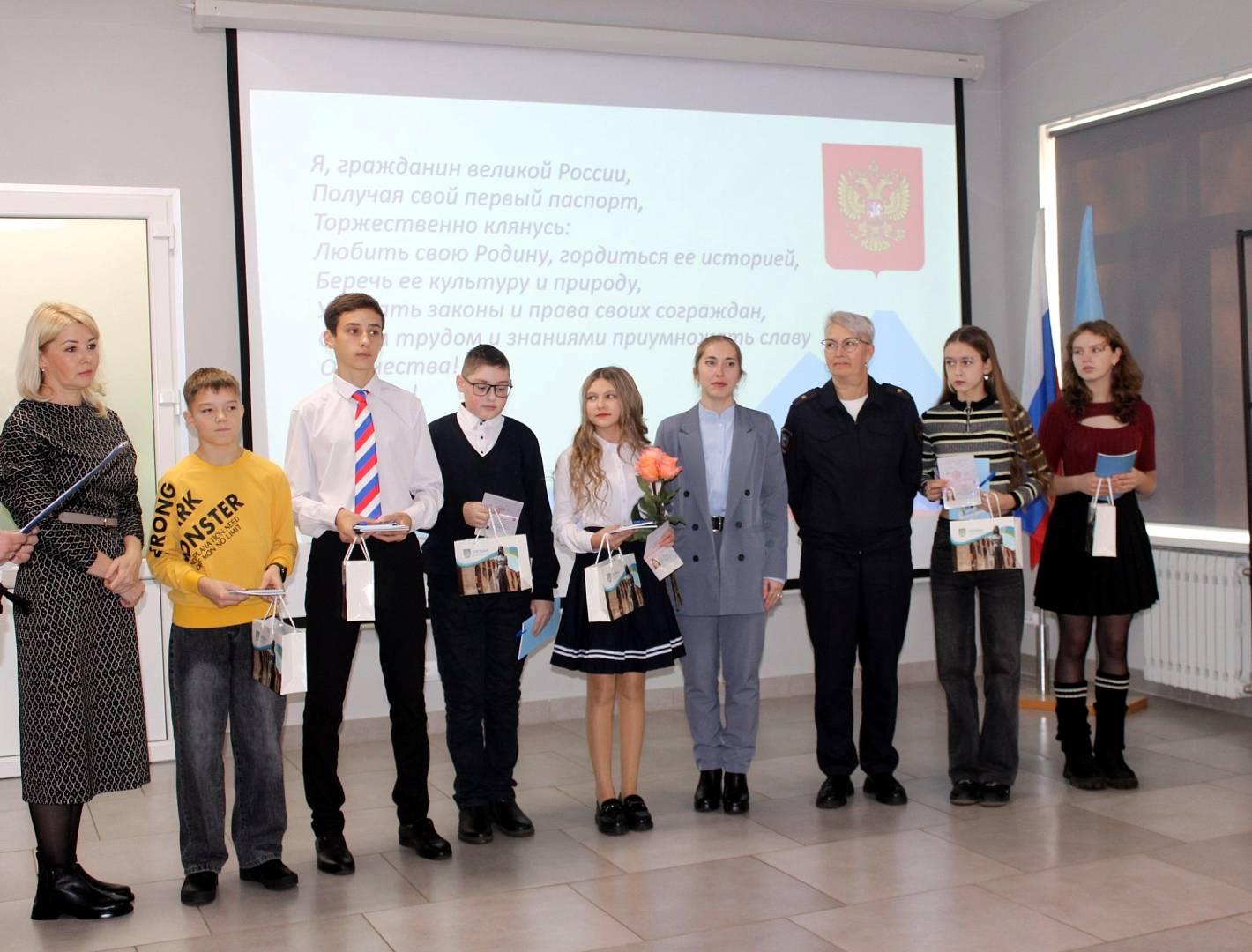 Вручение паспортов в преддверии Дня народного единства - это яркий пример того, как государство воспитывает в молодых людях чувство гражданственности и патриотизма. Этот день для ребят стал мостом между их личной историей и великой историей Отечества. И теперь, держа в руках свой первый паспорт, они точно знают: единство страны - это не просто слова из учебника, а ответственность, которая лежит и на их плечах. Теперь и вы становитесь частью этого единства. Ваша задача - учиться, трудиться на благо родного края и с честью нести звание гражданина России.
