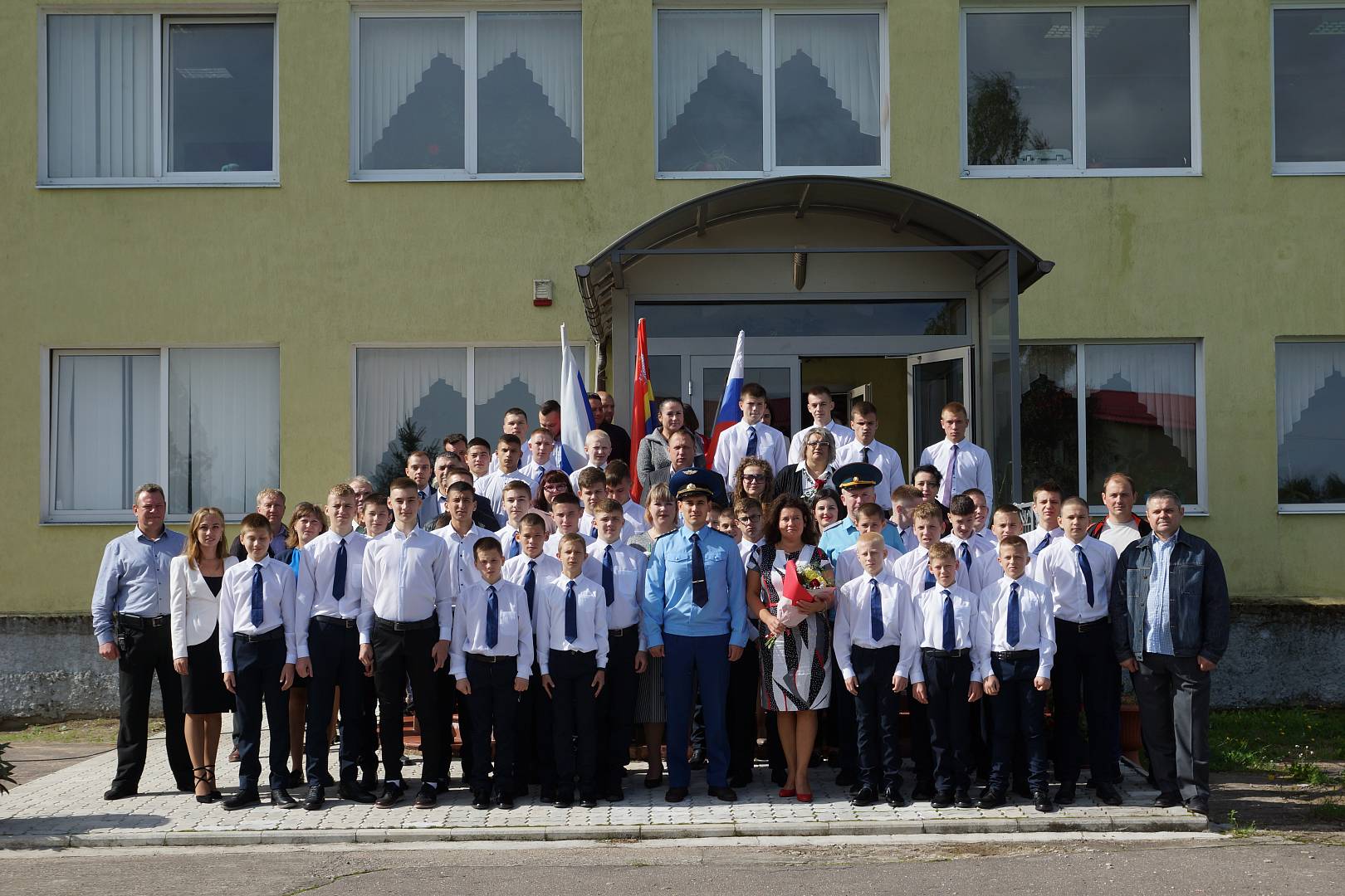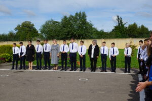 Все собрались на школьном дворе, зазвучал гимн России и всё наполнилось торжеством и гордостью.