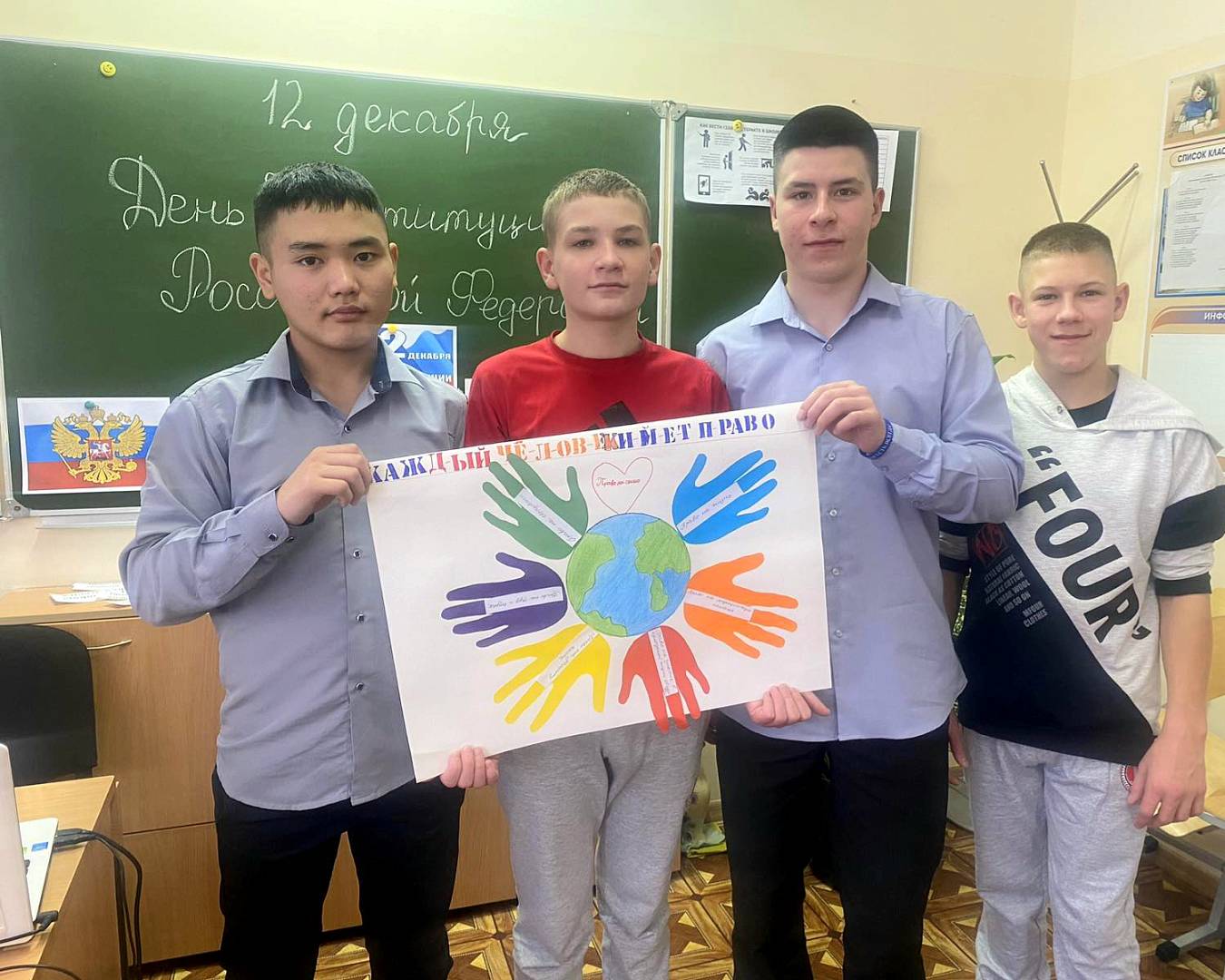 На мероприятиях обучающиеся вспомнили главные положения Конституции России, закреплённые в ней права человека, политические термины. С азартом ребята приняли участие в различных заданиях, познакомились с устройством государственной власти, полномочиями субъектов России, разгадали кроссворд, сделали стенгазету.