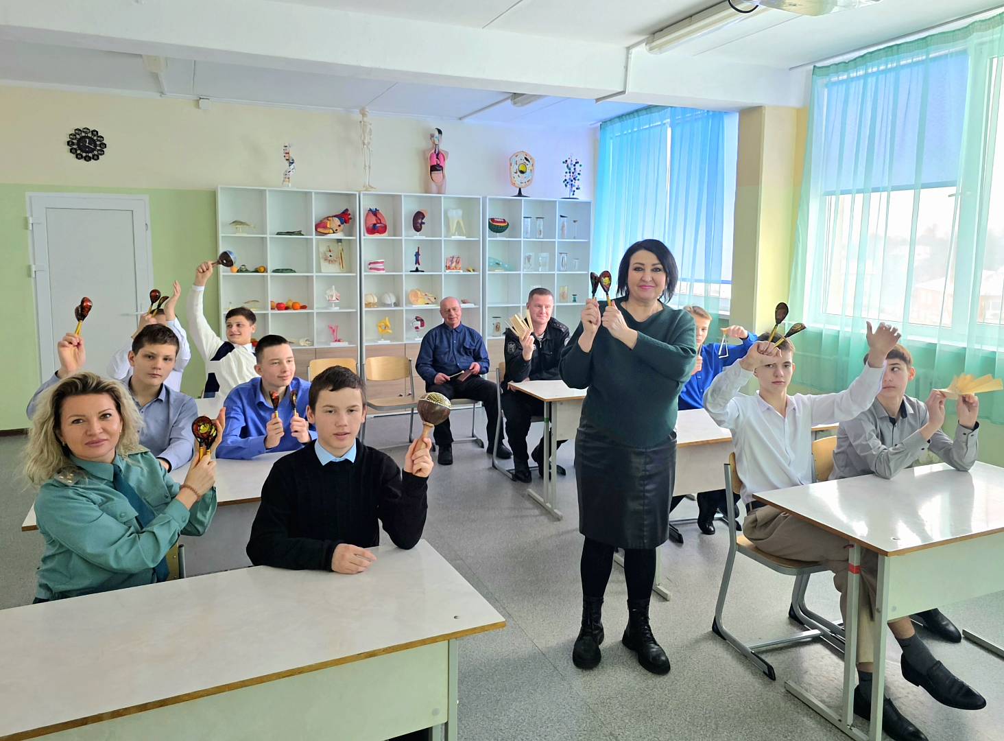 После экскурсии все переместились в школу, где прошли особенные уроки музыки и географии. На уроке музыки гости с ребятами смогли расслабиться, спеть знакомые песни, сыграть на музыкальных инструментах и принять участие в игре «Угадай мелодию». Это помогло создать непринуждённую обстановку музыкального взаимодействия и объединить участников общим творческим процессом.