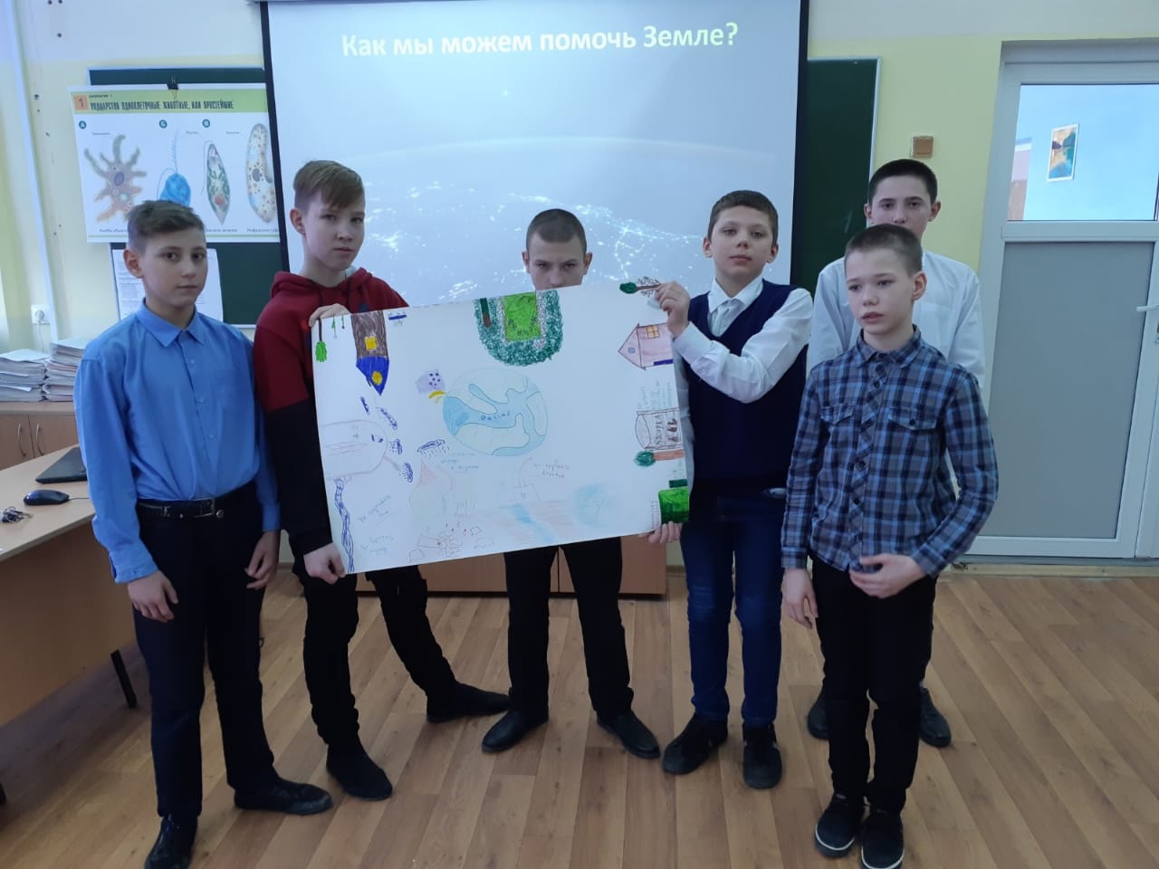 В течение дня обучающимся были предложены для просмотра краткометражные документальные фильмы о Земле ("Гейзеры планеты", "Такой удивительный животный мир" и др.). Обучающиеся 5А, 6А, 7Б, 8Б и 9Б классов посмотрели презентацию, рассказывающую о праздновании Дня Земли, а затем выполнили совместную проектную работу "Земля - наш дом!" по географии (учитель Вольските Г.С.). При выполнении проекта обучающиеся вспомнили основные правила охраны Земли, предложили свои варианты охраны окружающей среды и природопользования. Результатами своей проектной работы обучающиеся остались довольны.