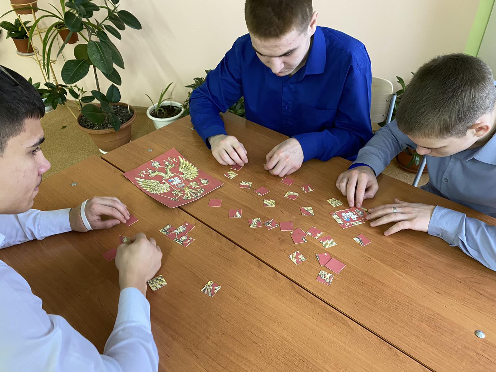 С целью воспитания у обучающихся уважения к символике своей страны, привлечения внимания подрастающего поколения к истории Российского государства, развития чувства гражданственности и патриотизма, любви к Родине, воспитания чувства гордости и уважения к защитникам государства в рамках проведения занятий «Разговоры о важном» состоялось мероприятие «Герб страны как предмет нашей гордости». И этот Разговор о важном начался с гимна Российской Федерации и вопросов: Назовите государственные символы нашей страны. Что такое Герб? Что он символизирует? Какое значение имеют государственные символы для страны? Во время занятия, обучающиеся вместе с ответами на вопросы выполняли задания, которые помогли ребятам разобраться в данных вопросах и в геральдике вообще.