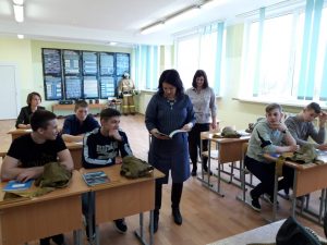 Тема урока: Подготовка к службе в Вооруженных Силах РФ. Специалист по охране труда, ГО и ЧС Шелестенко Валерий Анатольевич рассказал ребятам, что подготовка к военной службе начинается еще на уроках ОБЖ. На них закладываются первое понимание необходимости военной службы. Обучающиеся узнали, что служба имеет свою специфику, а солдатский дух – особенный. Практической частью стала тренировка в сдаче нормативов по сборке (разборке) пистолета Макарова и надевания противогаза.