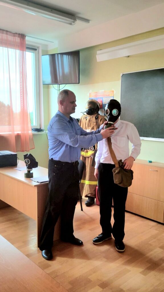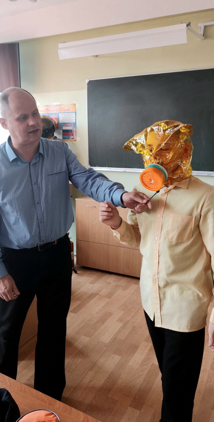 Обучающиеся приняли участие в тренировке по применению средств индивидуальной защиты при чрезвычайных ситуациях, отработали приемы самоспасения, использования первичных средств пожаротушения (огнетушители ОП-5, ОУ-3).