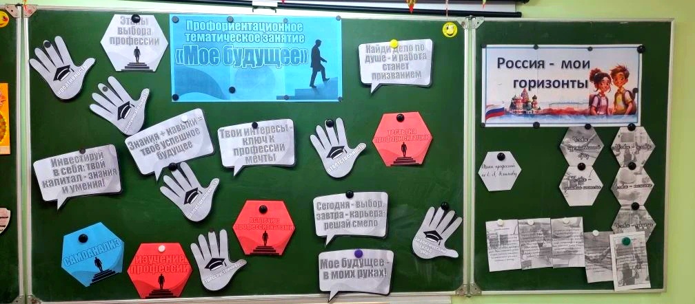 Наше занятие посвящено разбору результатов диагностики «Мои интересы». Мы с обучающимися продолжили говорить о том, как их интересы могут быть связаны с выбором профессии, профиля обучения. На занятии ребята узнали об особенностях, алгоритме и сроках прохождения профориентационных диагностик на портале «Билет в будущее».