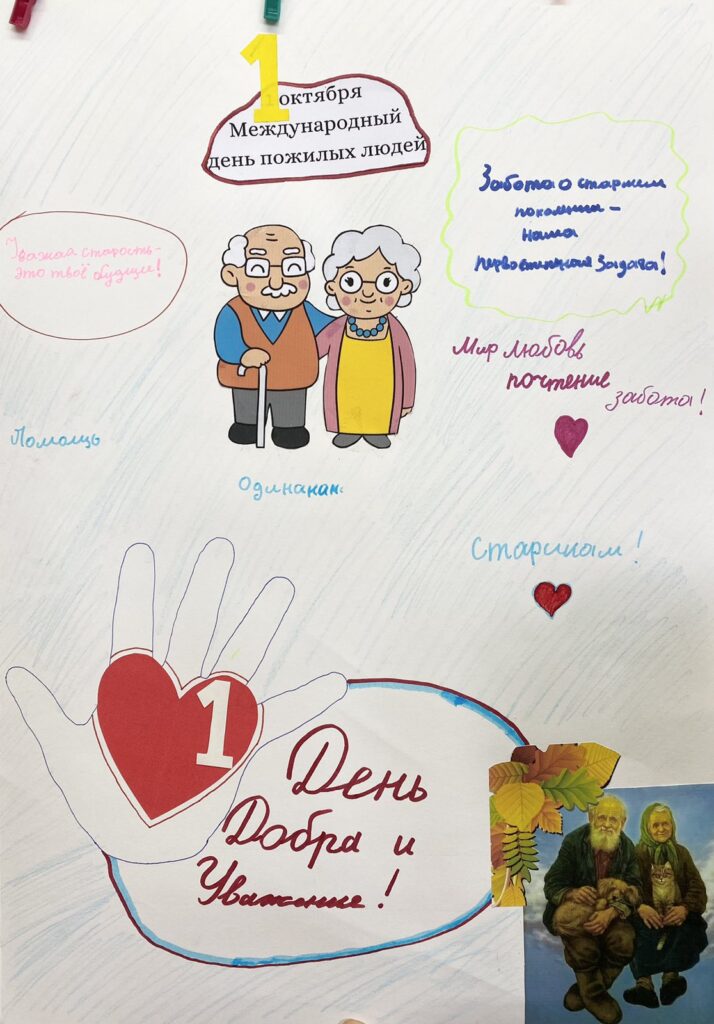 1 октября отмечался Международный День пожилых людей. И не зря, второе название этого дня – день добра и уважения. В этот день наши обучающиеся создавали социальную рекламу в виде плакатов, на которых были показаны эмоциональные слоганы и стихи для бабушек и дедушек. Мероприятие прошло в рамках курса внеурочной деятельности «Разговоры о важном». В ходе оформления плакатов обучающиеся отвечали на очень важные вопросы: «Что рекламируем?» и «Почему рекламируем?». А рекламируем, Уважение к старшим – до тех пор, пока существует человечество и человеческие отношения, вопрос об уважении к старшему поколению будет актуален всегда.
