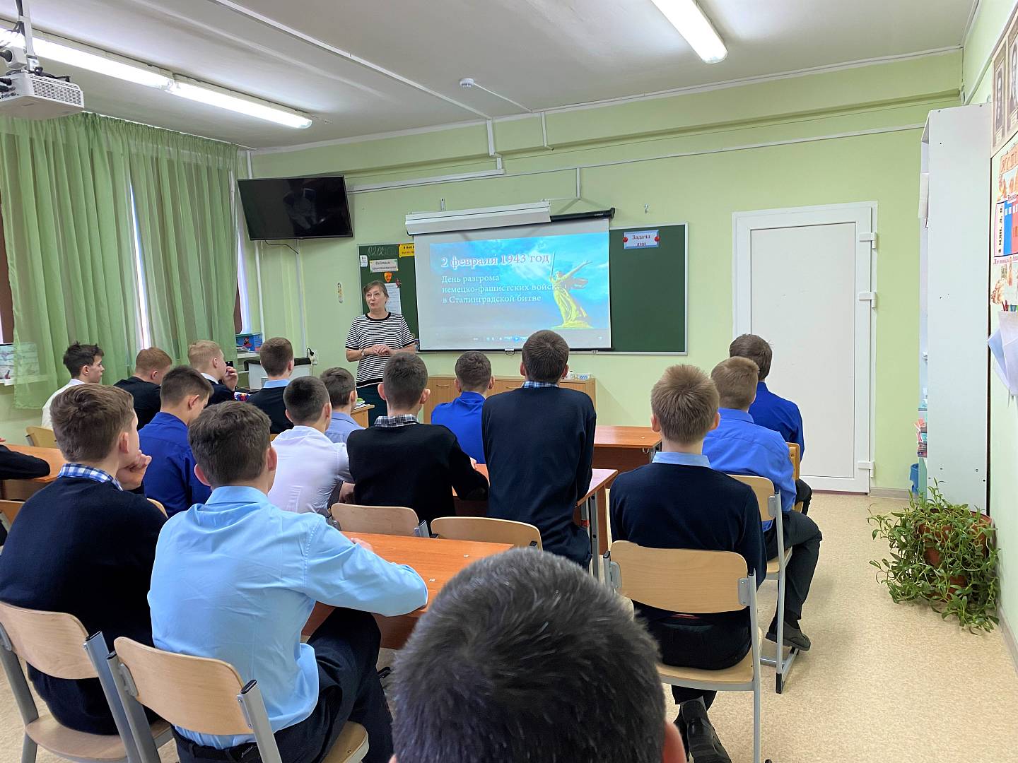 Заключительным моментом Урока был видеорассказ ведущего научного сотрудника музея-заповедника «Сталинградская битва» в г. Волгоград о самых маленьких («ростом с винтовку») защитниках Сталинграда, о тех мальчишках и девчонках, про которых мы неоднократно смотрели художественные фильмы. В память об участниках и о самом юном участнике Сталинградской битвы Сереже Алешкове состоялся просмотр художественного фильма «Солдатик». Сереже на тот момент было всего 6 лет.