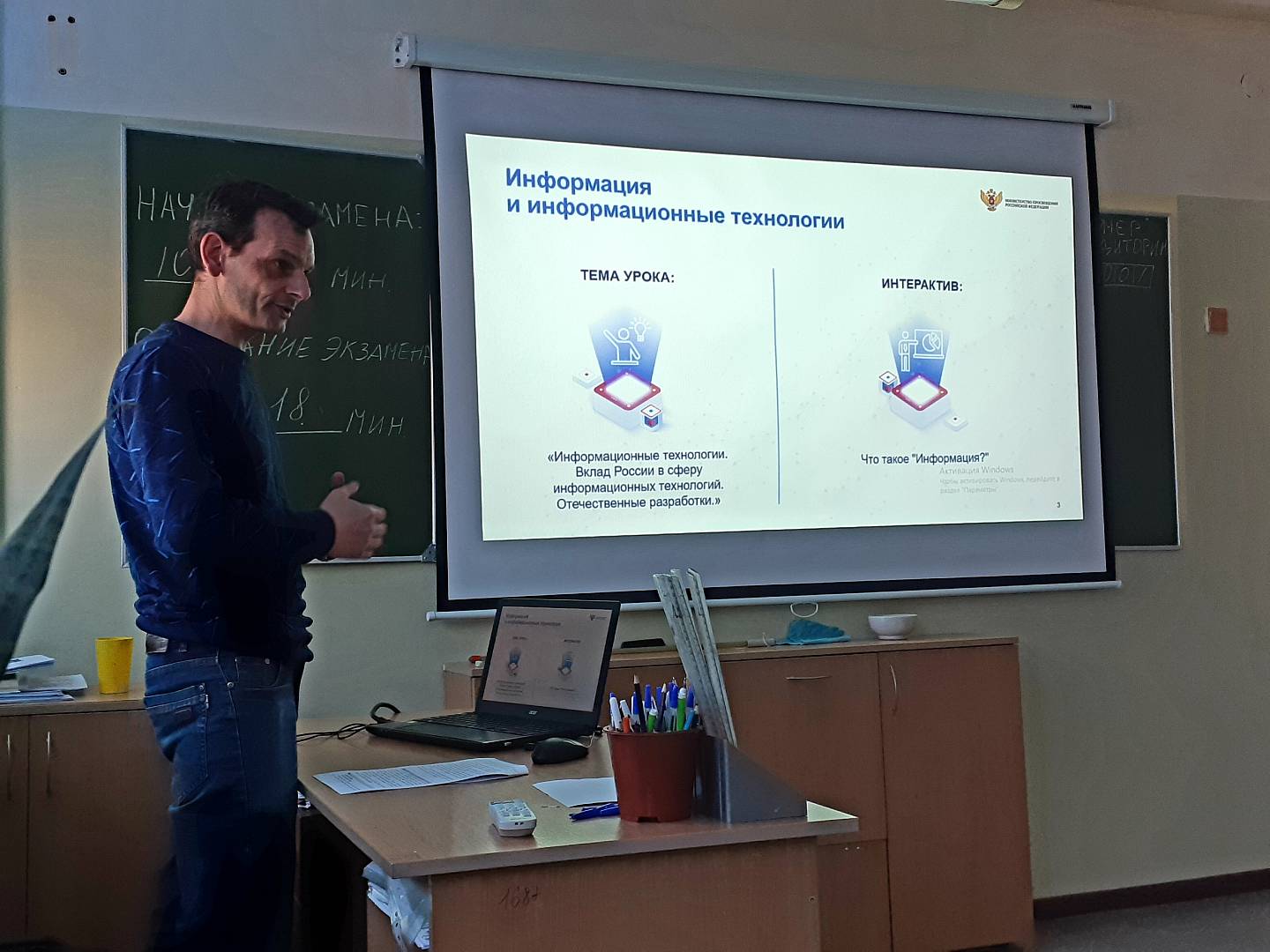 В ходе урока обучающиеся изучили понятия «Информация» и «Информационные технологии», познакомились с российскими программными сервисами, а также обсудили информационную безопасность.