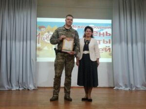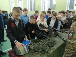 Наши социальные партнёры, сотрудники отдела специального назначения «Бастион» УФСИН РФ по Калининградской области, Фрей Александр Михайлович и Пшонко Владимир Дмитриевич поздравили ребят и провели для них Урок мужества. Познакомили детей со снаряжением, спецсредствами и оружием, стоящим на вооружении спецназа. Рассказали историю развития флага, герба и гимна РФ.