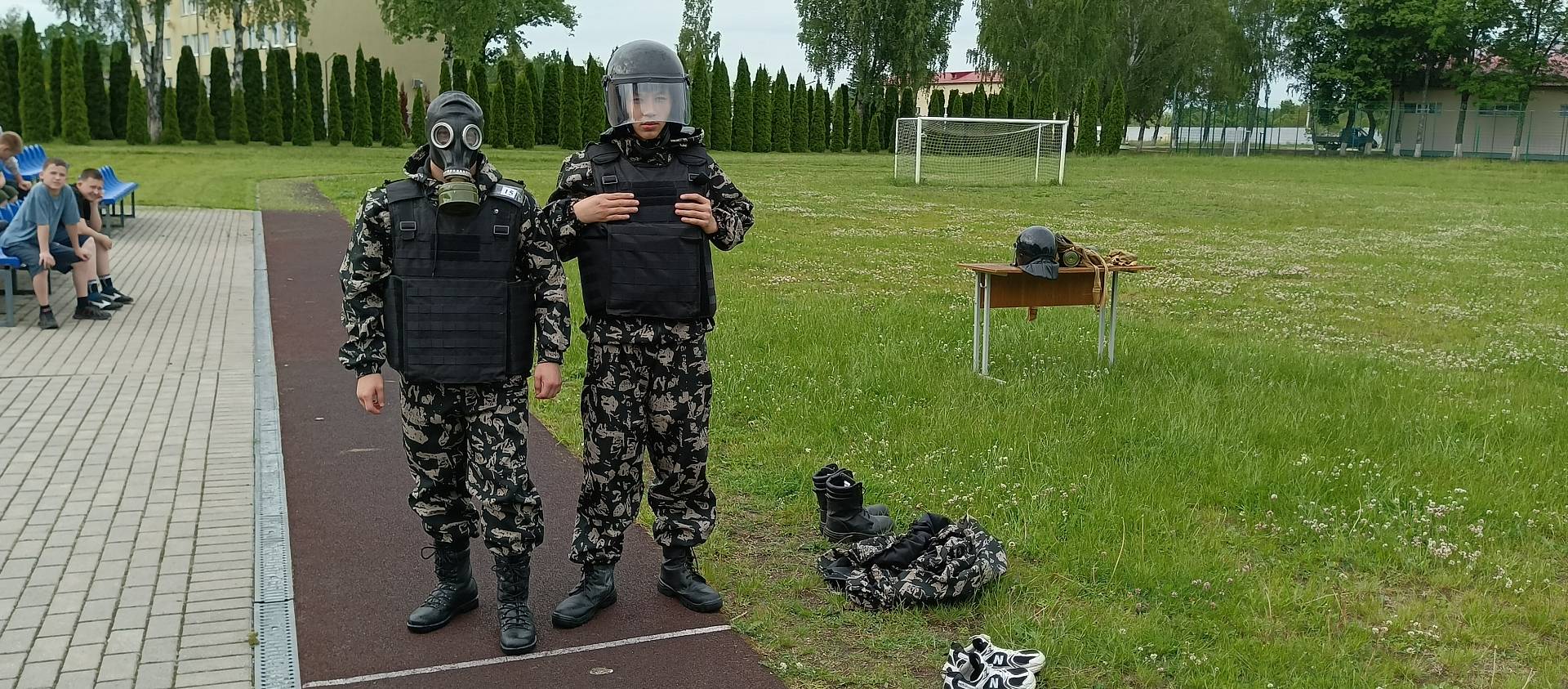 На военной службе, а тем более во время боевых действий, от физической подготовки часто зависит жизнь. Хорошая физическая подготовка и сильное выносливое тело – залог успеха и шанс выжить в сложных условиях. Сегодня ребята попробовали себя в качестве военнослужащих: одевали форму, держали оружие, бегали на короткие дистанции в противогазе, одетые в бронежилет и каски.