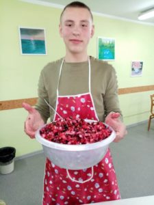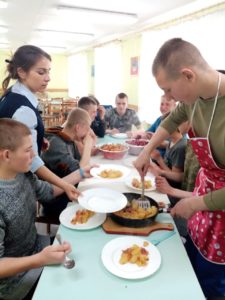 2 июня проходил шуточный час общения «Суп из топора», который плавно перешёл в кухню на мастер-класс «Быстро и вкусно». Ребята с большим азартом учились месить тесто на любимой сгущенке, из которого получилось много вкусных и сладких колобков. Одновременно другие ребята готовили самый праздничный салат «Винегрет». Повторяя и соблюдая технику безопасности при работе в кухне, ребята учились правильно чистить и нарезать овощи.