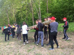 Мероприятие началось с уборки территории, потом всех ждал вкусный обед. А в завершении праздника, для ребят были проведены веселые старты, перетягивание каната и футбол.