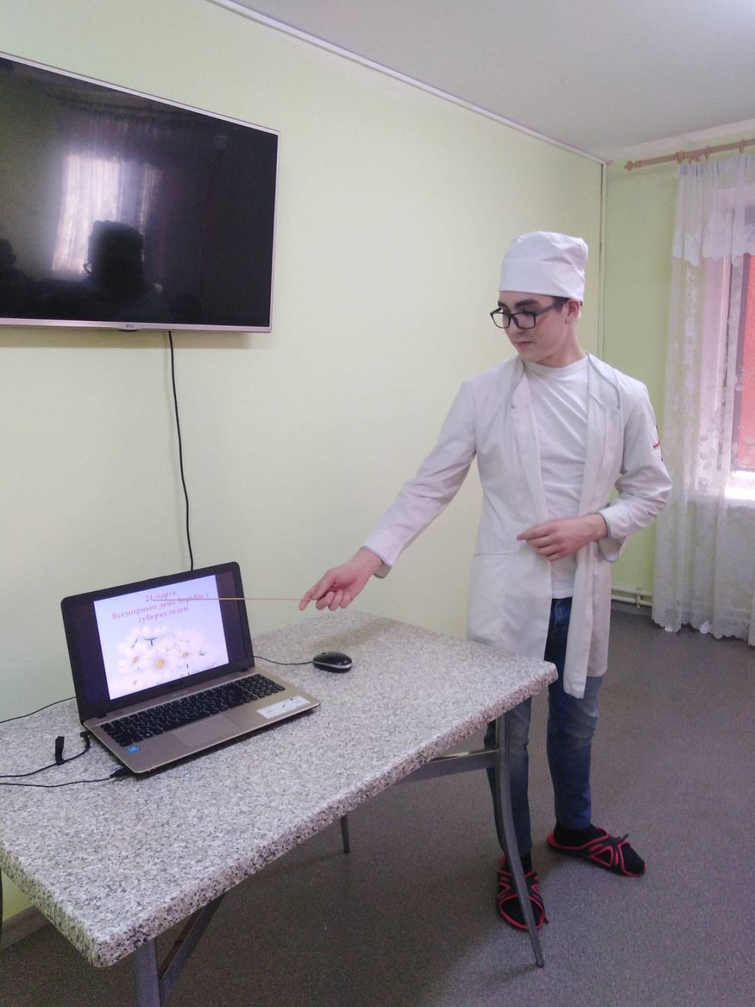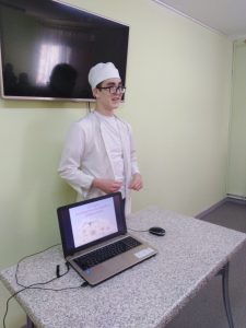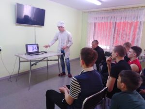 Педагог-организатор Ткачук Светлана Владимировна представила обучающимся профессора в области медицины из Уфы, роль которого сыграл Давыдов Константин, обучающийся 11 класса. Константин до начала мероприятия изучил тему и подготовил презентацию. В образе профессора он представил ребятам свою работу, ответил на все интересующие вопросы.