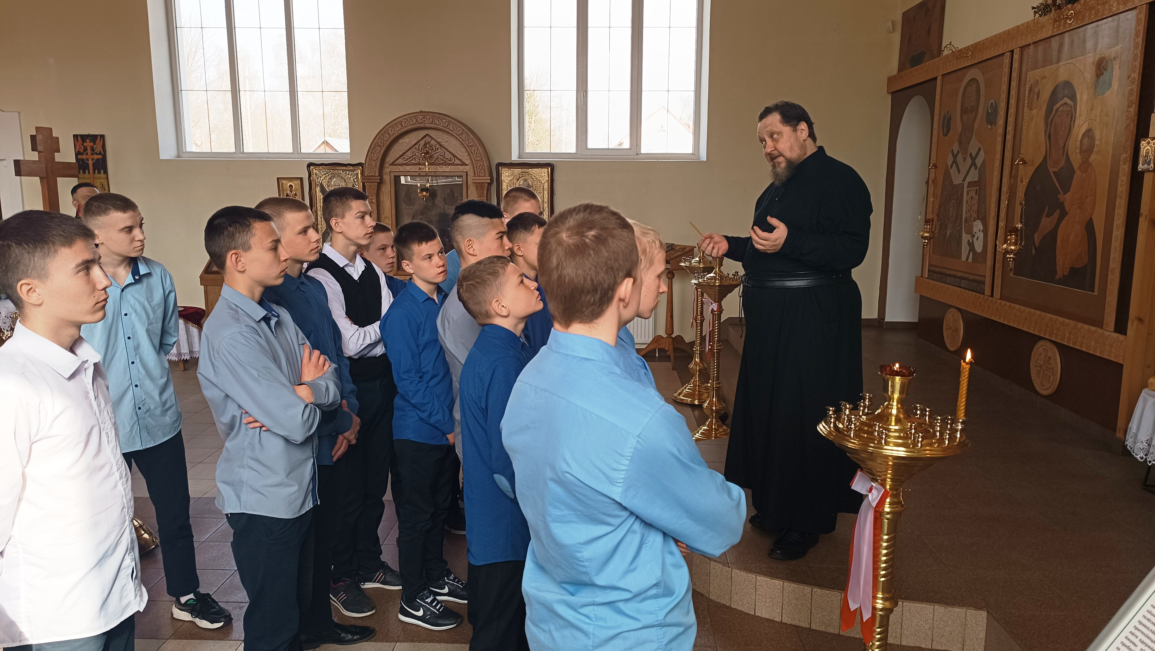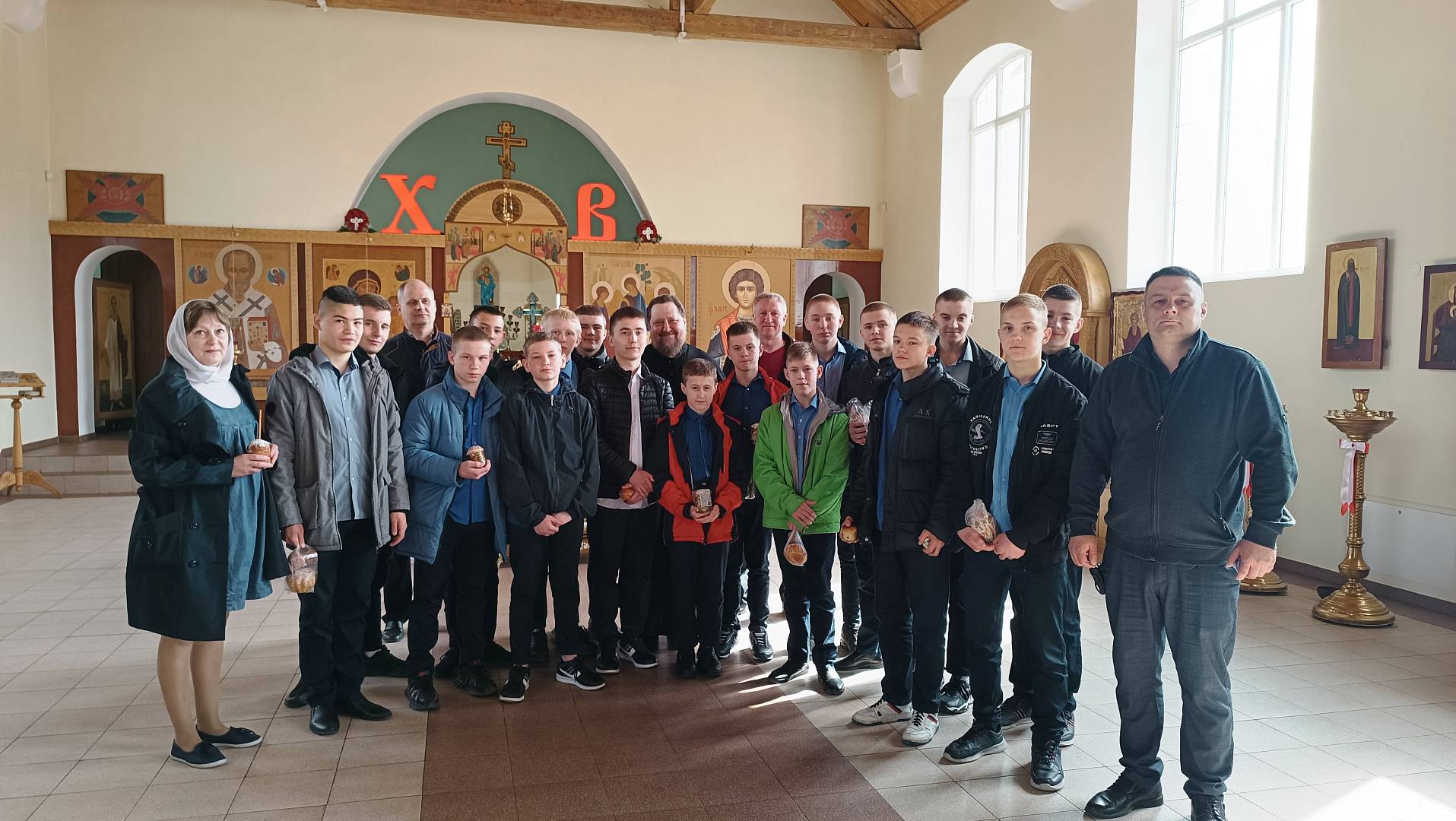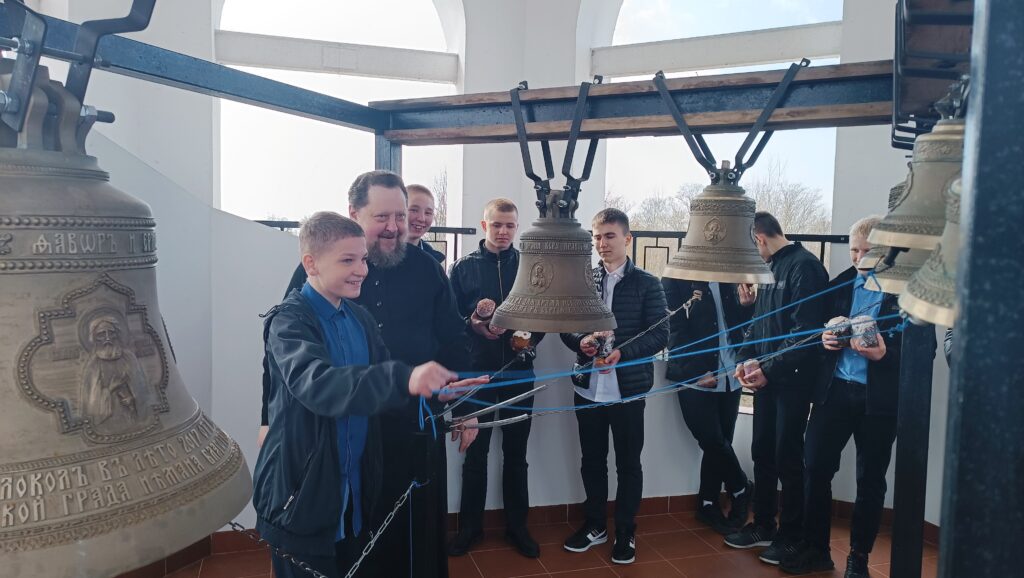 Мальчишки рассматривали иконы, угостились пасхальными куличами, зажгли свечки за здравие родных и близких, за усопших. Затем все поднялись на колокольню храма, где Батюшка показал им мастер-класс по колокольному звону. После, все желающие могли попробовать себя в роли звонаря.
