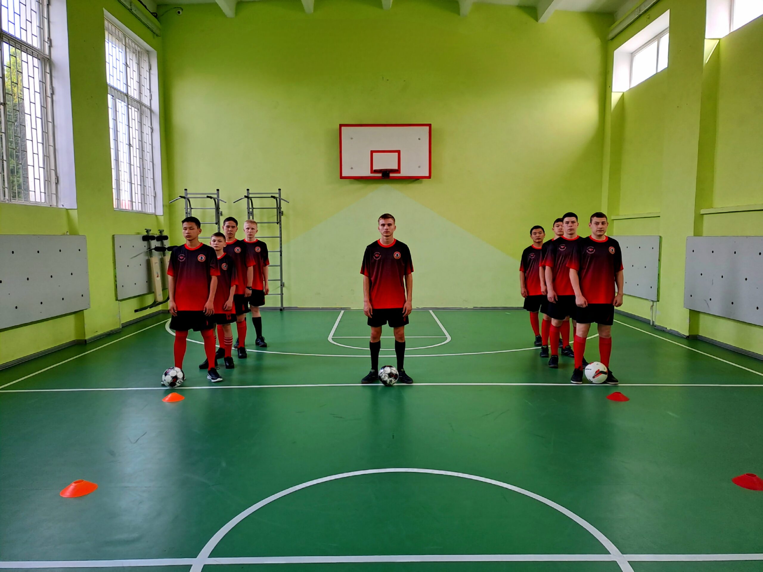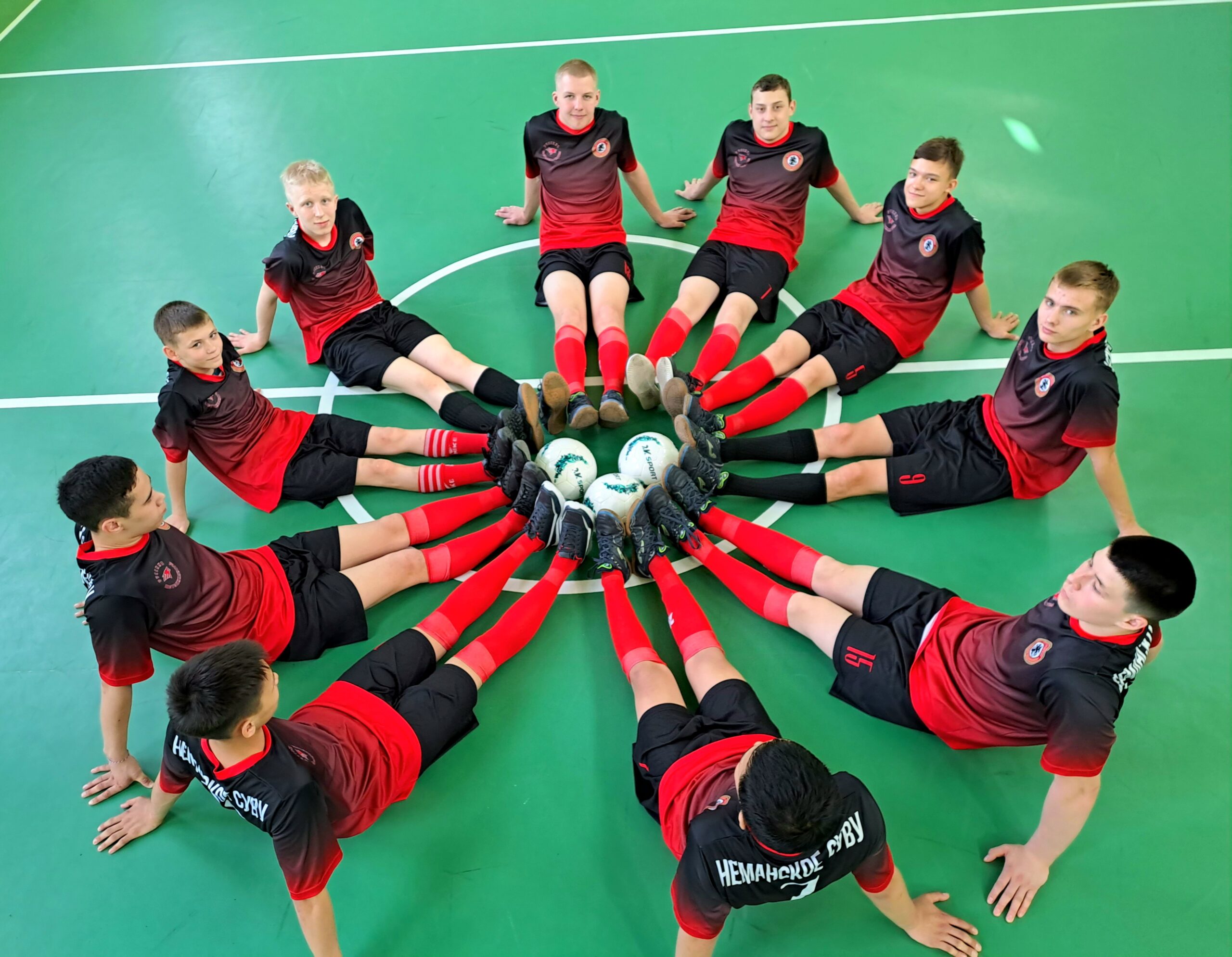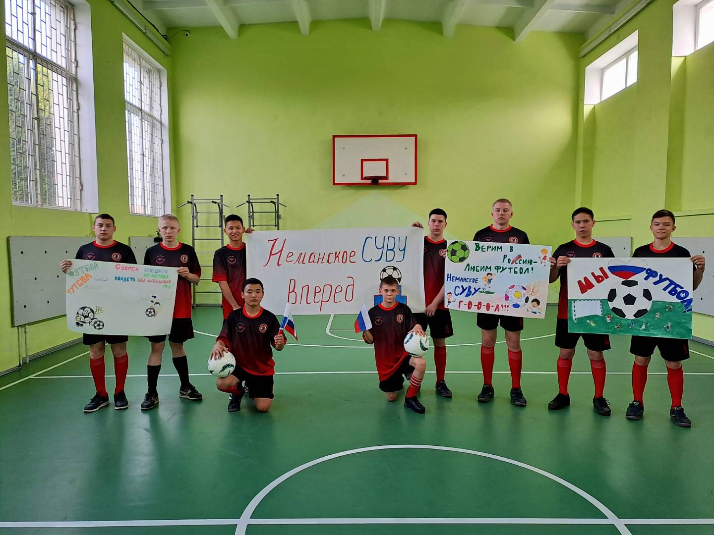 Обучающиеся в поддержку футбольной команды Неманского СУВУ скандировали «кричалки», подготовили тематические плакаты, выстраивались в виде фигур, подготовили выступления с использованием футбольных мячей.