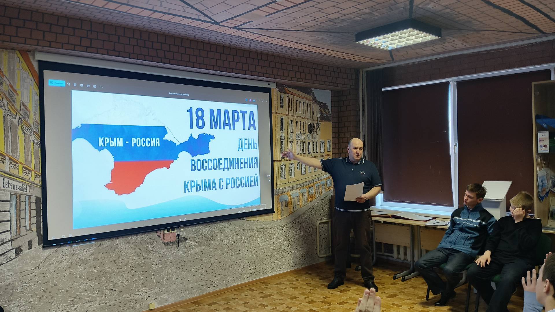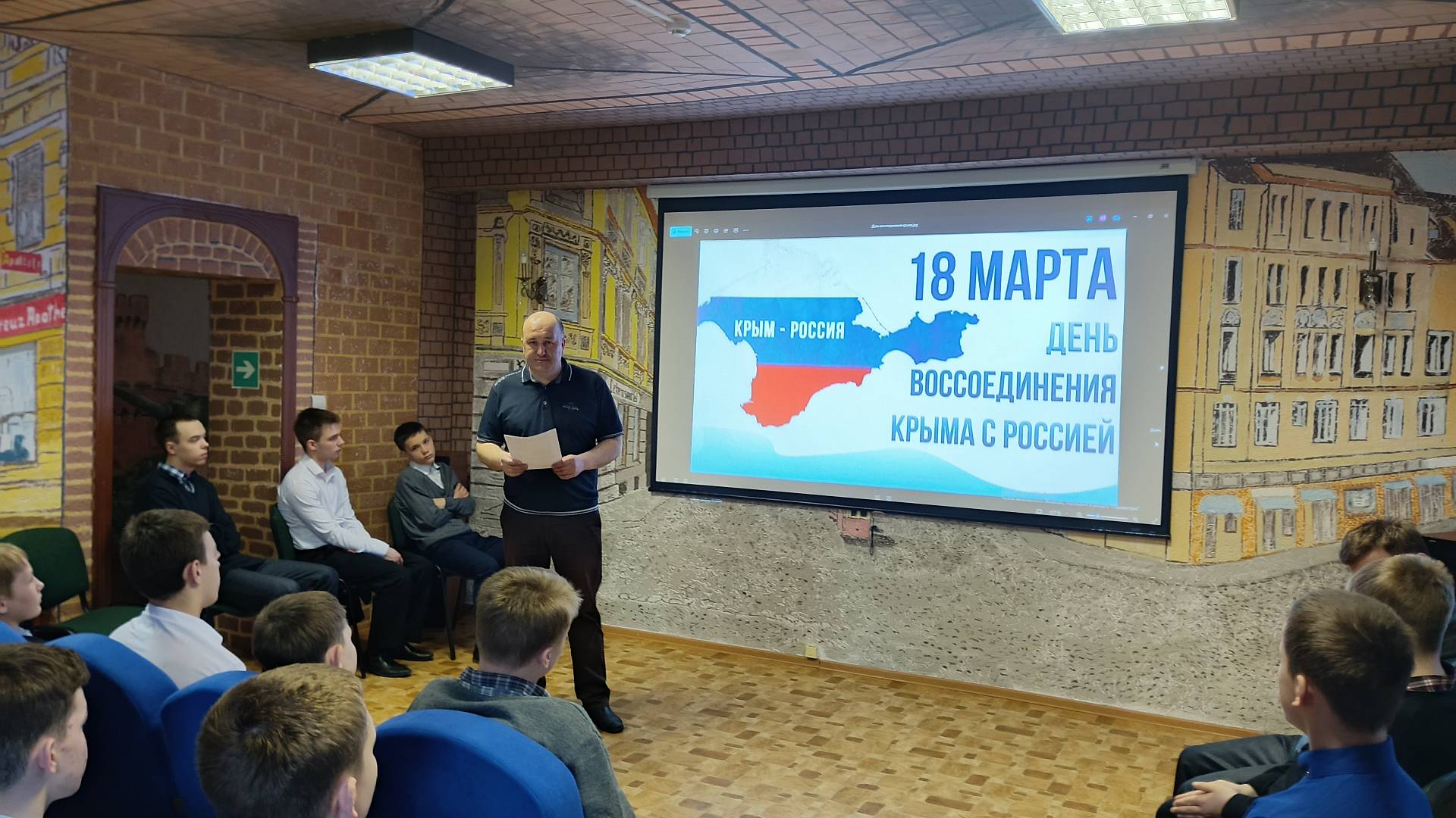 В ходе мероприятия в день празднования Дня воссоединения Крыма с Россией с обучающимися Неманского СУВУ была поднята тема мужества, чести и доблести нашего народа, а так же вспомнили историю данного события.