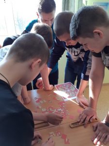 Обучающие были разделены на 2 команды: у каждой команды был свой маршрут на время. Все станции были распределены по всей территории учреждения. Главной задачей было непросто правильно и быстро выполнить задание на станции, но для начала отгадать где, находится зашифрованная станция. Обучающие бегали и с удовольствием отгадывали шифры и задания.