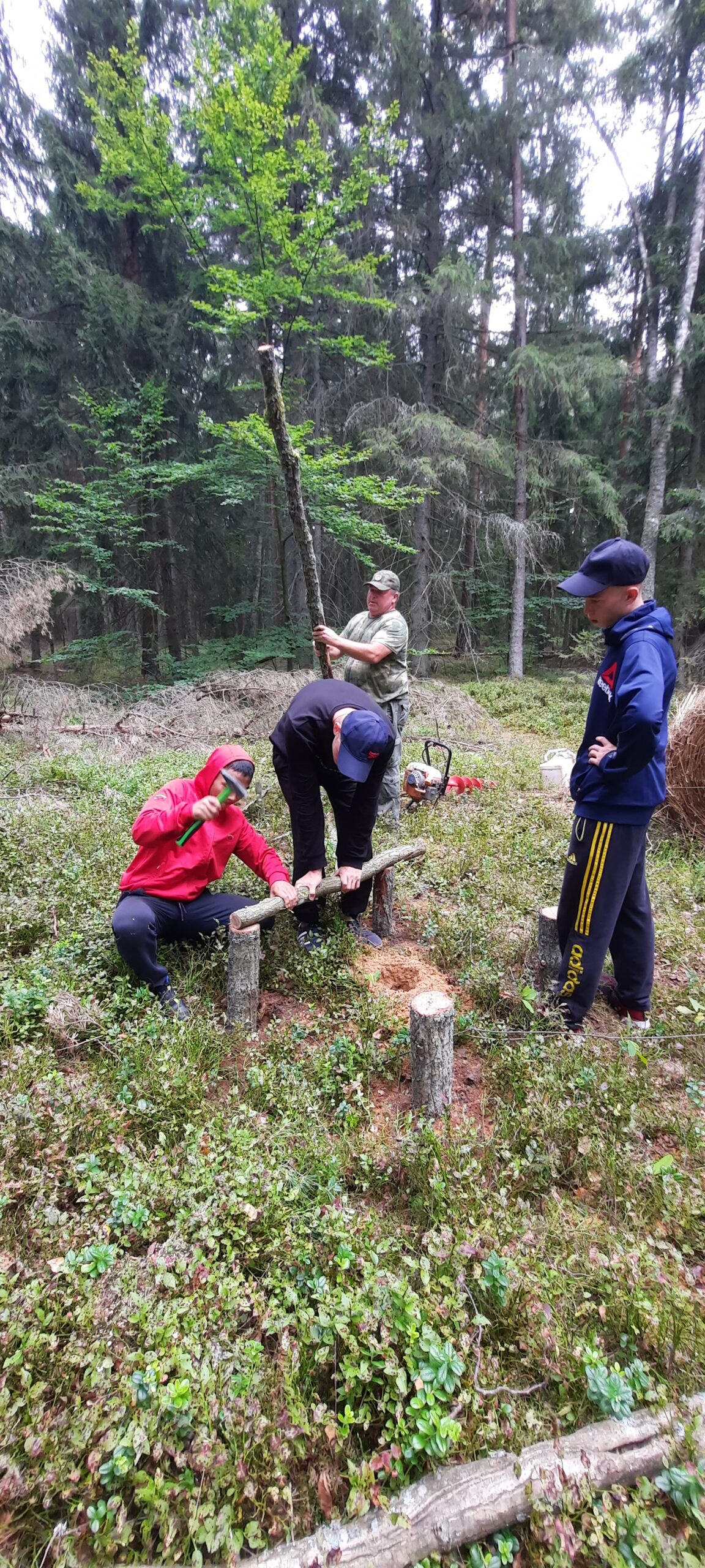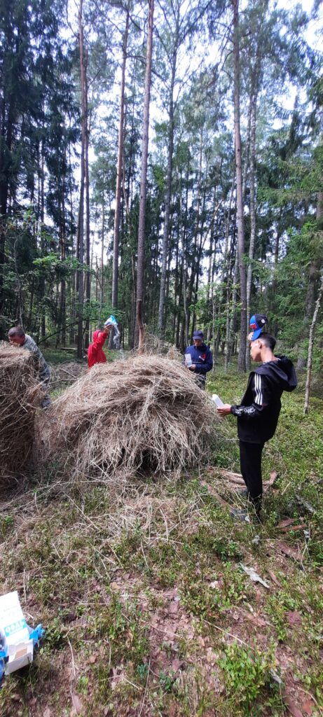 Говорово для постройки кормушки для диких зверей. По приезду в лес нашли подходящую поляну и начали сооружать кормушку. Приложив немного усилий, у ребят все получилось, накидав в кормушку сена и подсыпав все солью, получилась хорошая подкормка диким зверям.