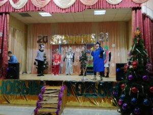 На сцене развернулось сказочное действие, где зловредная уборщица из магазина игрушек хотела испортить праздник. Герои сказки, игрушки из магазина, где была уборщица, конечно, ожили. Они, вместе со всем зрительным залом, справились с её заданиями. И добро победило зло! В конце представления Дед Мороз и Снегурочка зажгли разноцветными огнями праздничную ёлку, наградили победителей новогодних конкурсов. Потом, по старой доброй традиции, все желающие рассказали стихи Деду Морозу.