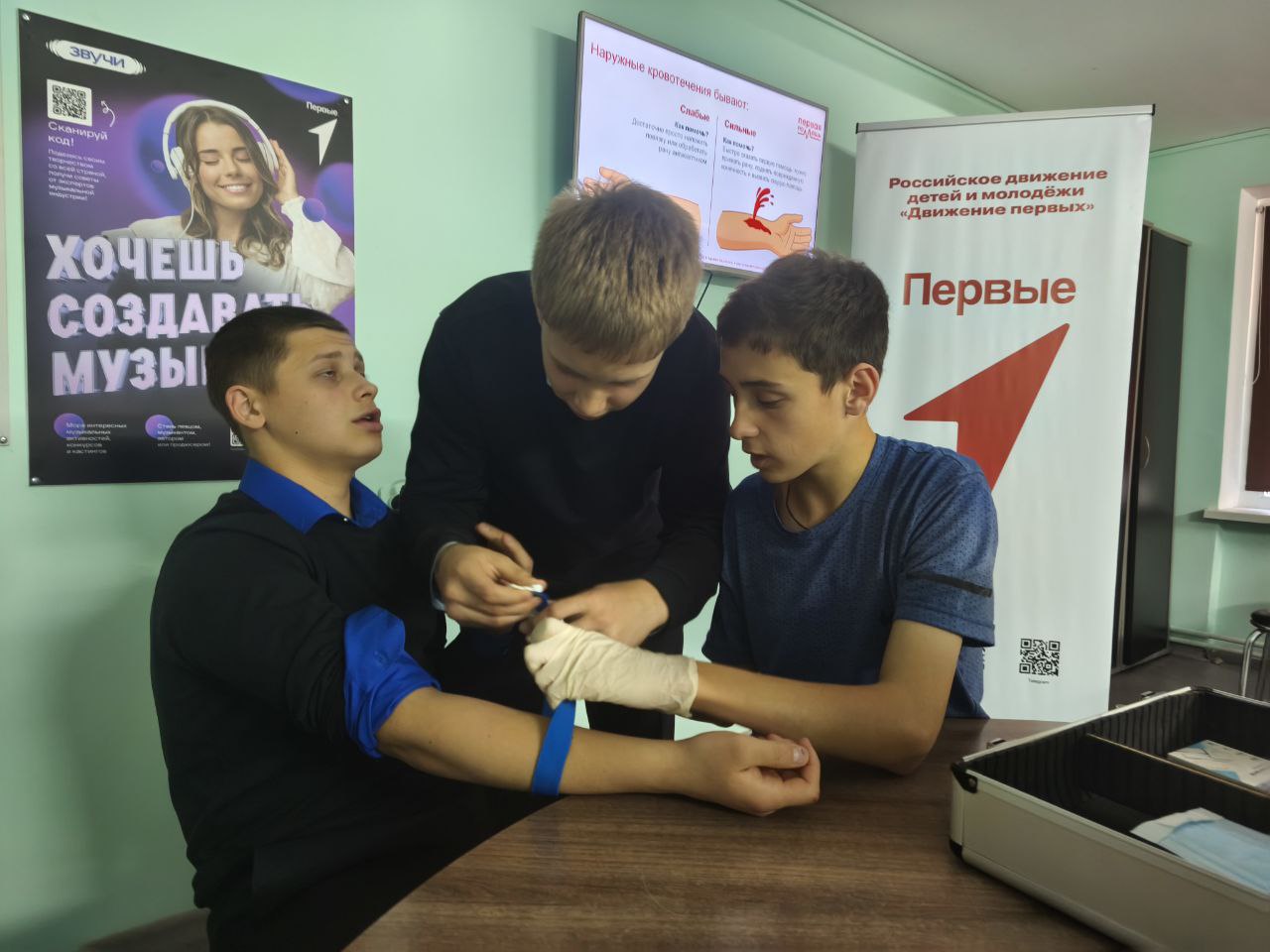 Во время уроков ребят учились перевязывать раны, останавливать кровотечение с помощью жгута или подручных средств, обучались алгоритму оказания помощи людям с разными травмами.