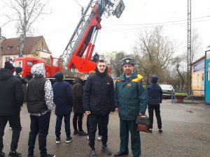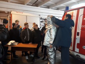 Заместитель начальника отдела надзорной деятельности и профилактической работы по Краснознаменскому, Неманскому, Полесскому, Славскому и Советскому городским округам, майор внутренней службы Дикарев Виталий Александрович, наставник обучающегося Федорина Андрея, показал ребятам автомашины, специальные средства при тушении пожара. Ребята убедились в том, что представитель данной профессии должен обладать крепкой психикой, высокой стрессоустойчивостью, хорошей физической подготовкой, психологической устойчивостью и широким кругозором.