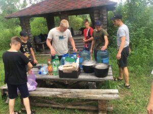 В ходе похода ребята узнали, как ориентироваться в незнакомой местности, как разбирать собирать походные плащ-палатки, как разводить костёр, помогали в готовки обеда и ужина на природе, помимо этого ребята играли в волейбол и многое другое.