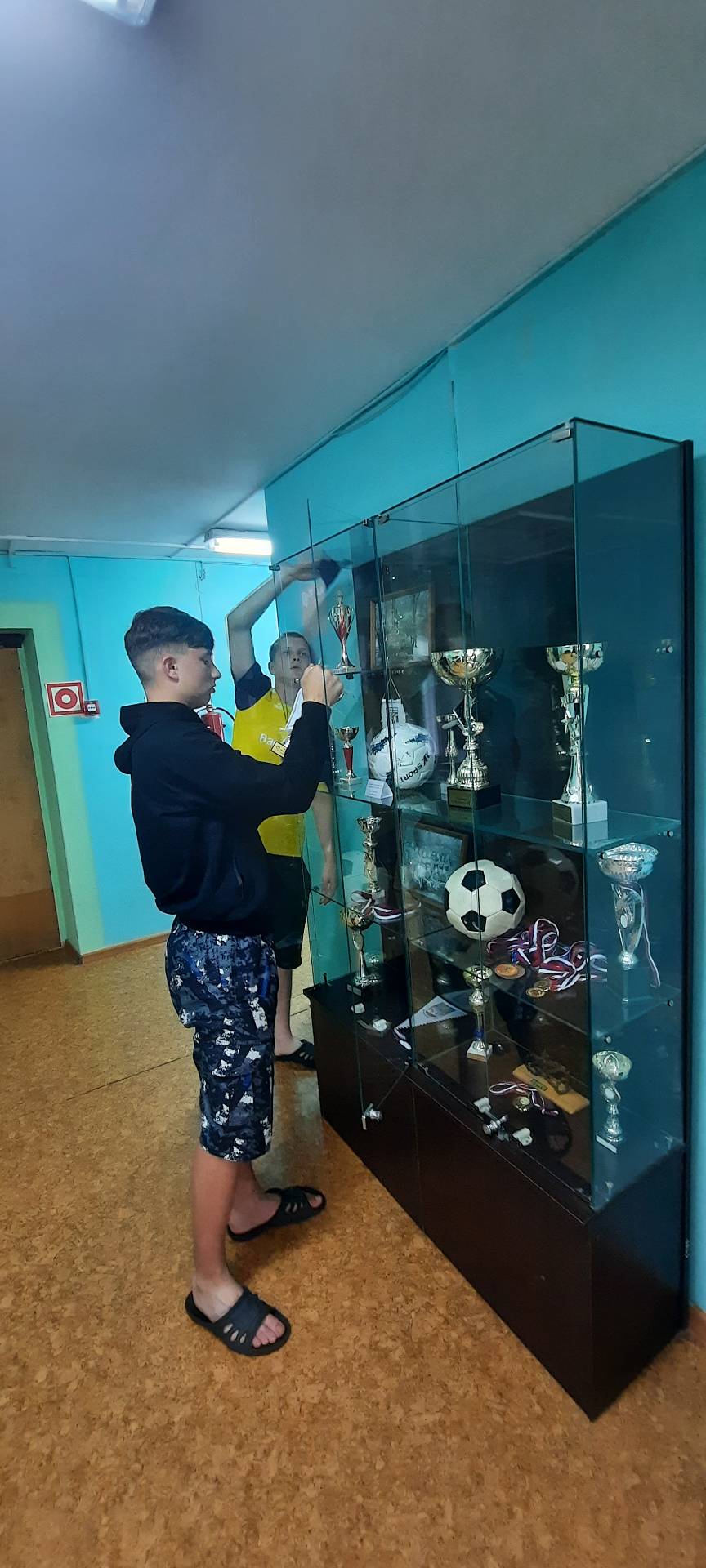 И, конечно, мы пригласили эксперта в вопросах организации пространства, нашего заведующего музеем, учителя истории – Ирину Александровну Шелестенко, которая подсказала, как и на что обратить внимание, при установке кубков, наград и оформлении стендов. Уверены, что следующего трофея не долго ждать, ведь наши ребята, сейчас, именно в эти дни участвуют в Всероссийском конкурсе по основам здорового и безопасного образа жизни для обучающихся специальных учебно – воспитательных учреждений «Формула БЕЗопасности», посвященного Году защитника Отечества в Омском СУВУ. Пожелаем им победы.
