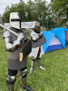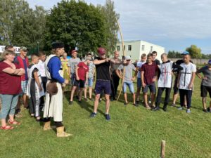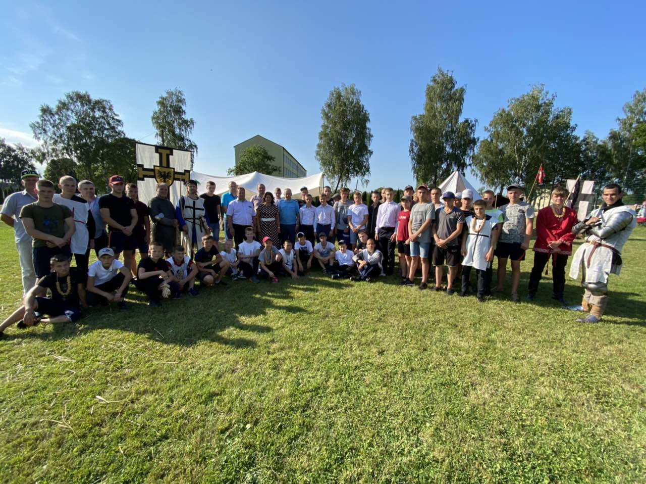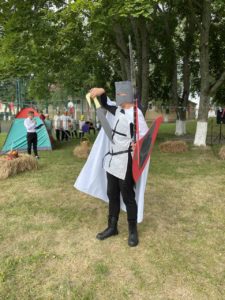 Колона рыцарей исторического клуба «Замок Инстербург» продолжила торжество. Сила, мощь, доблесть и отвага живет в сердцах и наших ребят, которые предстали в костюмах отважных рыцарей, изготовленными своими руками. После показательных боев рыцарей исторического клуба, наши обучающиеся могли также продемонстрировать свои рыцарские качества. Ребята стали участниками мастер - класса по фехтованию и стрельбе из лука, желающие примерили доспехи. Михаил П. исполнил балладу о доблестных рыцарях, провели конкурс рисунков и гербов рыцарей. Убранство территории и инсталляции средневекового подворья (телега, предметы утвари, стоги сена), скотный двор, шатры, рыцарский лагерь с флагами, которые издалека давали понять, что территория завоевана, инсталляция выносного музея нашего учреждения погрузили всех присутствующих в атмосферу Средневековья. Где-то неподалеку блеяли овцы, мычал крупно рогатый скот, и довольная лошадь, отмахиваясь от надоедливых насекомых, в благодарность за угощения от ребят, делала круг за кругом, приводя в восторг от поездки. Запах от стога сена дополнял общую картину и убранство территории. Еще никогда нашему учреждению не удавалось так четко воспроизвести быт Средневековья и суметь выполнить сразу несколько задач, одна из которых: сформировать у подростков гражданско-патриотическое сознание, а также воспитать любовь к своему краю, его культуре и духовным традициям.