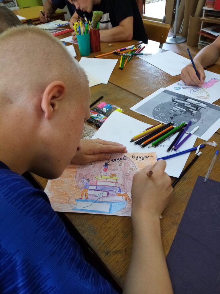 Мальчишки в своих работах показали школьный мир будущего. В фантазиях ребят, учителя будущего используют в обучении голограммы, помощников - роботов и даже живые иллюстрации в книгах.