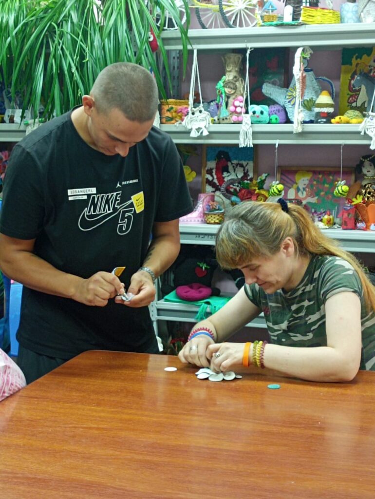 Добровольский психоневрологический интернат «Дубрава» предназначен для временного и постоянного проживания людей, имеющих инвалидность и страдающих хроническими психическими заболеваниями. Располагается учреждение в поселке Добровольск Калининградской области. Педагог дополнительного образования по кружку «Гончарное дело» Пиляк А.С. изготовили с воспитанниками интерната ромашки из кожи и янтаря. Педагог-психолог Соломина А.В. показала мастер класс по направлению маскатерапия, где воспитанники интерната попробовали создать маску своего образа и просто снять эмоциональное напряжение с помощью рисования. Обучающиеся Неманского СУВУ приняли активное участие в деятельности, оказывали поддержку и помощь воспитанникам интерната. Получили опыт взаимодействия с особыми людьми, который позволит развить в себе толерантное отношение к людям с особенностями.