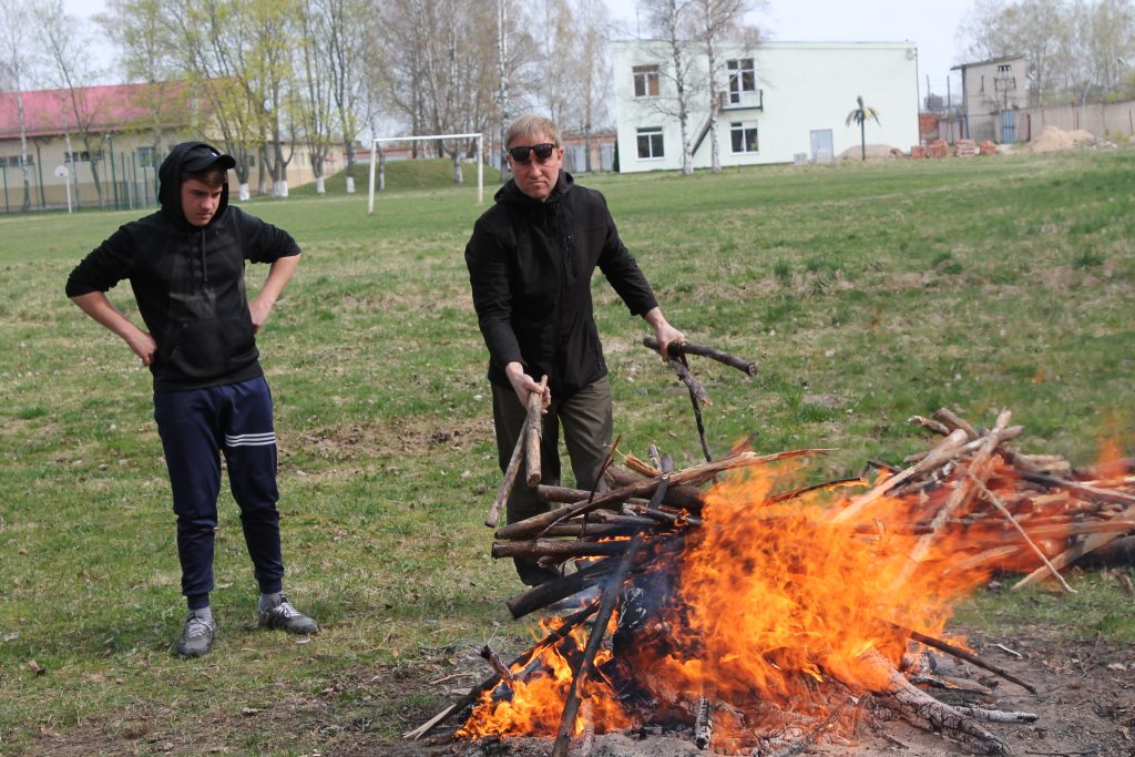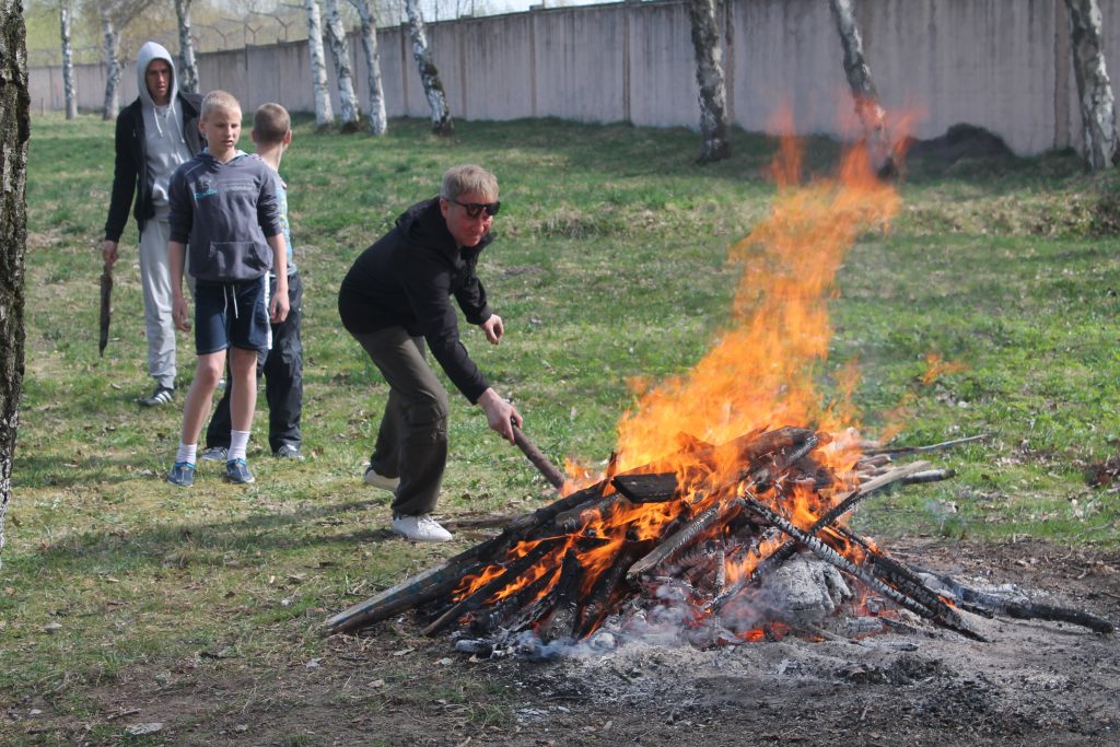 Все обучающиеся вышли на территорию учреждения с лопатами, граблями и метлами. В течении двух часов все намеченные участки территории были убраны, мусор вывезен в заранее подготовленную компостную яму. Завершилась акция приятным сюрпризом для ребят. Был организован костер, на котором мальчики пекли картошку, привезенную с учебного хозяйства и с большим удовольствием жарили хлеб.