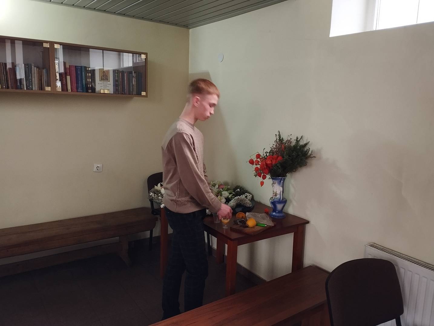 В храме воспитанника встретил отец Серафим. Он провёл для него небольшую экскурсию, рассказал об истории храма и его значении для верующих. Также отец Серафим выступил в роли наставника и поделился своими знаниями и опытом.