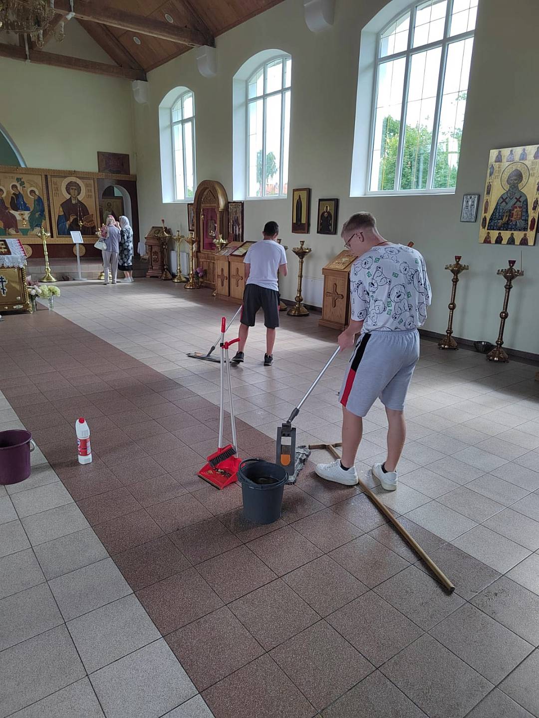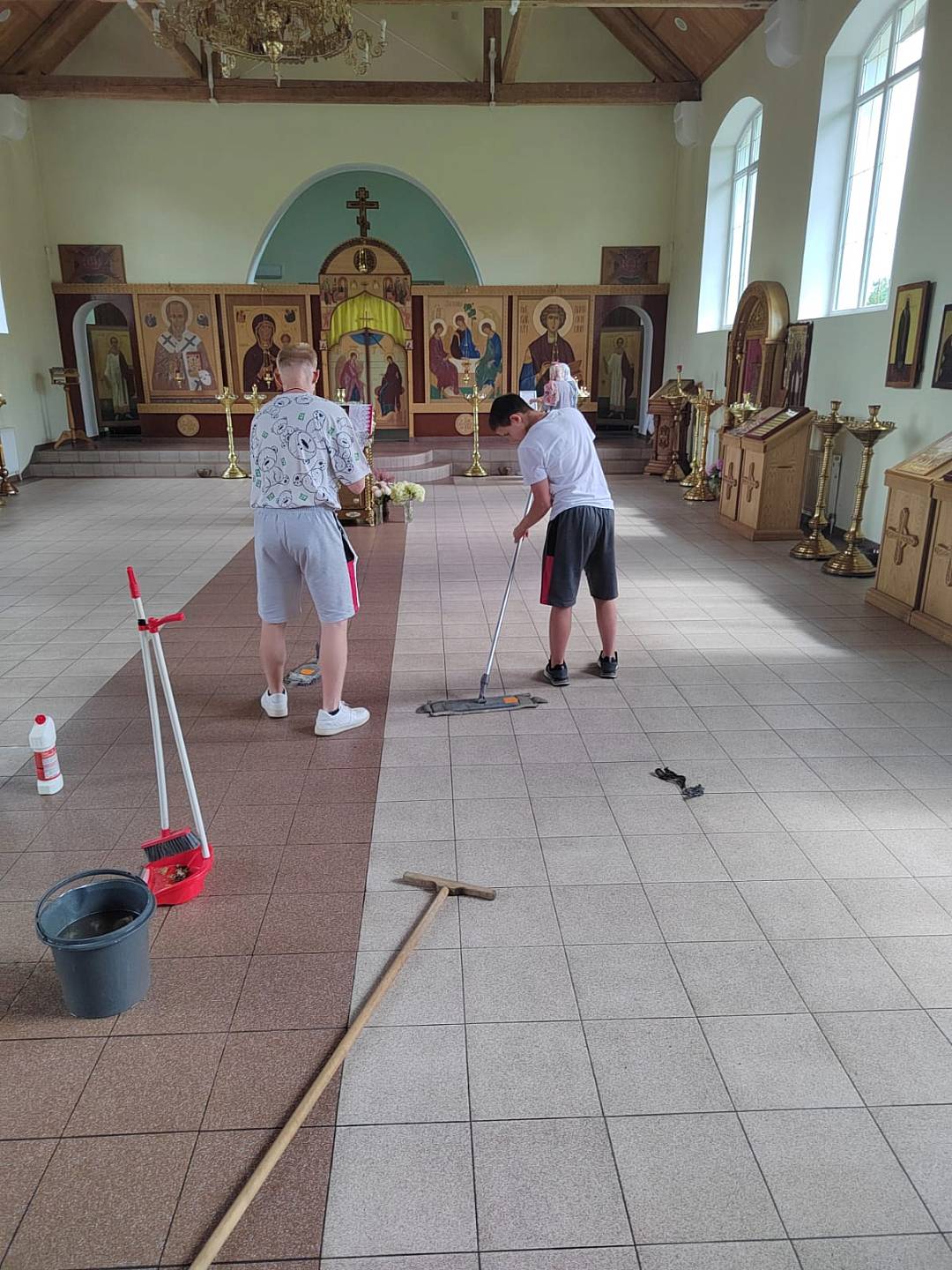 Как только был определен фронт работ, ребята с энтузиазмом принялись за работу. Ребята с другими прихожанами помогли убирать помещения храма, мыть полы, вытирать пыль, выносить мусор и убрать все места до блеска. Их работа была неоценимым вкладом в сохранение чистоты и порядка в этом священном месте.