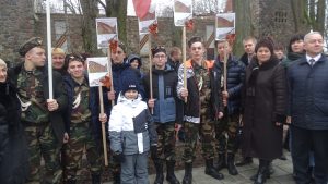 Организовано, с флагом, в военной форме и плакатами с изображениями Рагнита во времена военных действий, во главе с исполняющей обязанности директора Катаевой Анной Васильевной, появились обучающиеся нашего учреждения, отличавшиеся на общем фоне всех присутствующих. Заместитель председателя МОО "Комиссия по борьбе с коррупцией" Анатолий Гаврилович Матвеев приехал поддержать наше учреждение, принял участие в митинге и остался до конца торжественного мероприятия.