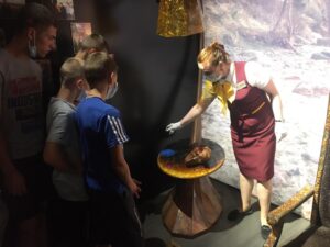Вначале обучающиеся посетили янтарную палату Янтарного Комбината, где была проведена познавательная экскурсия об истории создания солнечного камня, его разновидностях. Также были представлены янтарные экспонаты: всевозможные украшения и статуэтки, самородки и т.д.