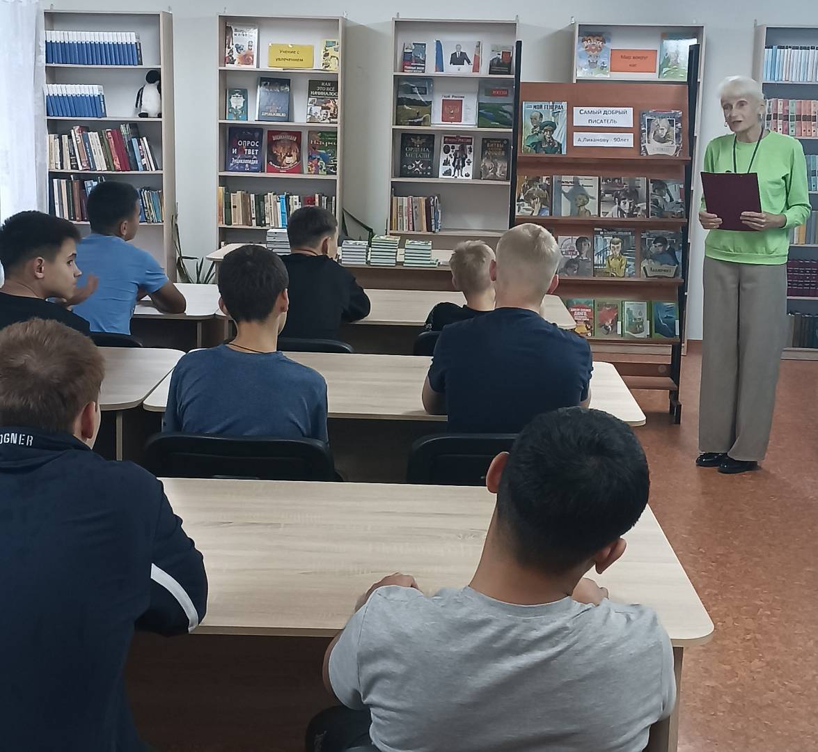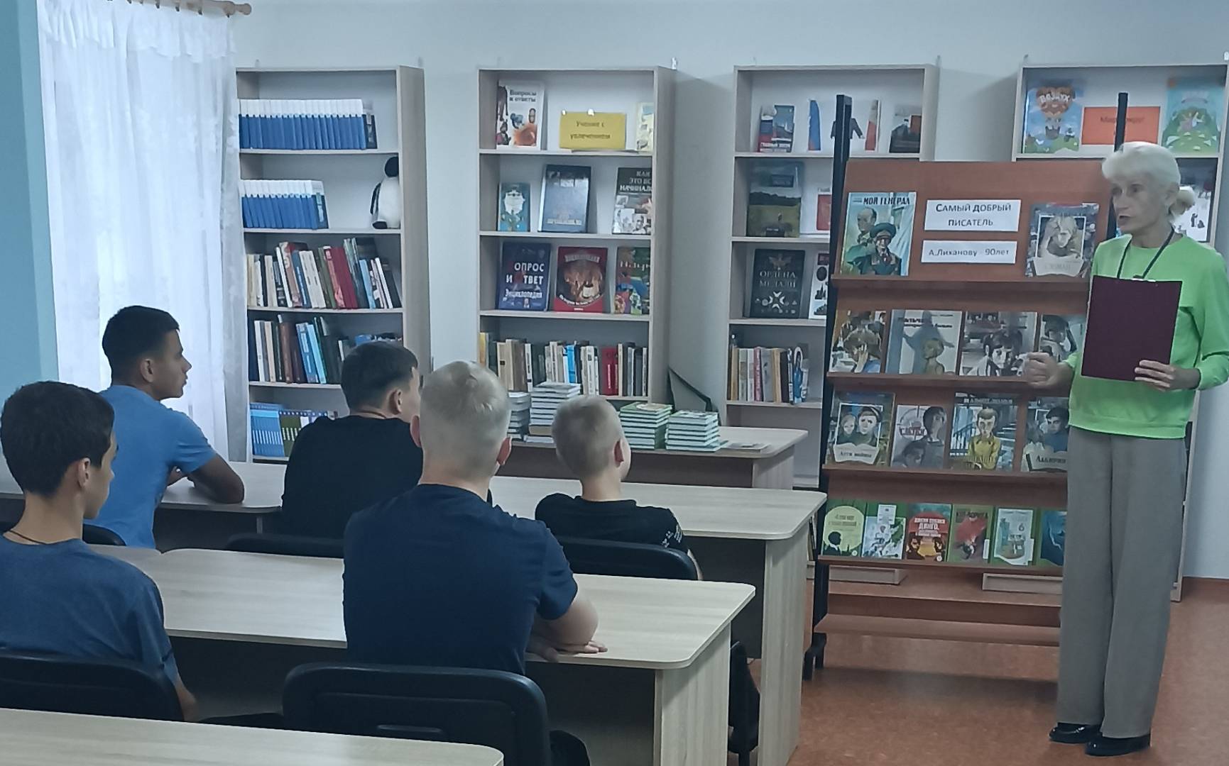 К 90-летию А. Лиханова в библиотеке Неманского СУВУ был проведен обзор творчества "Защитник детства Альберт Лиханов". В начале мероприятия библиотекарь познакомила ребят с творчеством, биографией и наградами общественного деятеля и писателя. Книги Альберта Лиханова – яркий пример патриотизма и гражданственности. Много произведений он посвятил теме военного детства, все они правдивы, потому что взяты из жизни. В них говорится о судьбе детей. которые попали в тяжелую жизненную ситуацию, и какой силой воли нужно обладать, чтобы остаться добрым, и человечным. Вниманию ребят была предоставлена книжная выставка «Самый добрый писатель». Знакомство с книгами этого замечательного писателя дало всем участникам урок добра и справедливости.