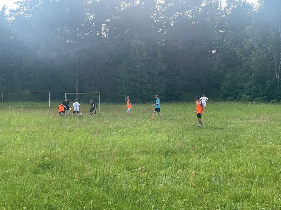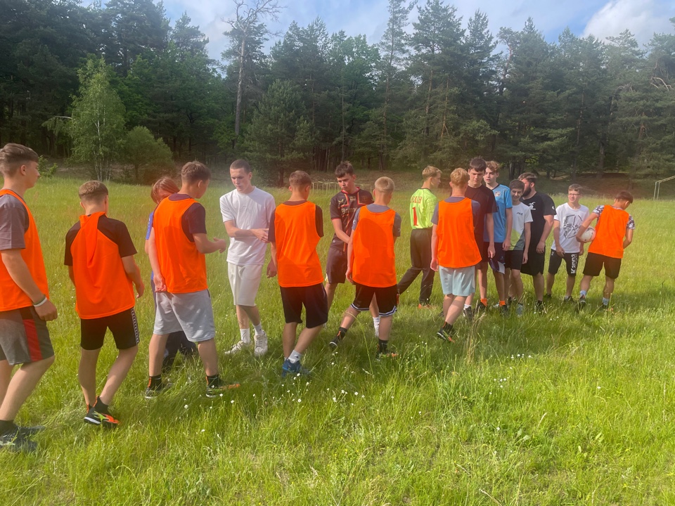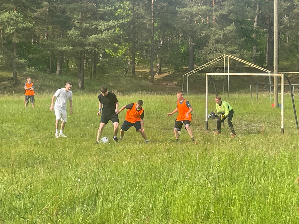 Наша футбольная команда продолжает готовиться к соревнованиям в городе Санкт-Петербурге. В период подготовки мы изучаем разные стратегии игры, разных команд. В этот раз, футбольная команда Неманского СУВУ провела товарищеский матч с командой из оздоровительного лагеря «Спутник». Игра состоялась на футбольном поле в п. Большое село Неманского района. Скажем прямо, что футбольное поле в п. Большое Село, спортсмены не посещали давно и трава сильно подросла, но для наших ребят дополнительные трудности только на пользу, ведь мы то помним афоризм Суворова «Легко в ученьи – тяжело в походе, тяжело в ученьи – легко в походе».